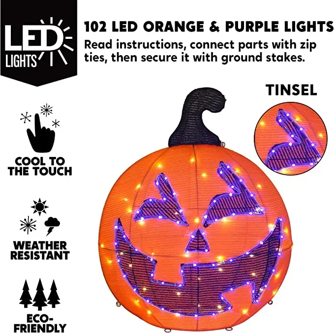 Joiedomi LED Yard Lights – Tinsel Pumpkin (1 Head) 30in – Halloween Decorations