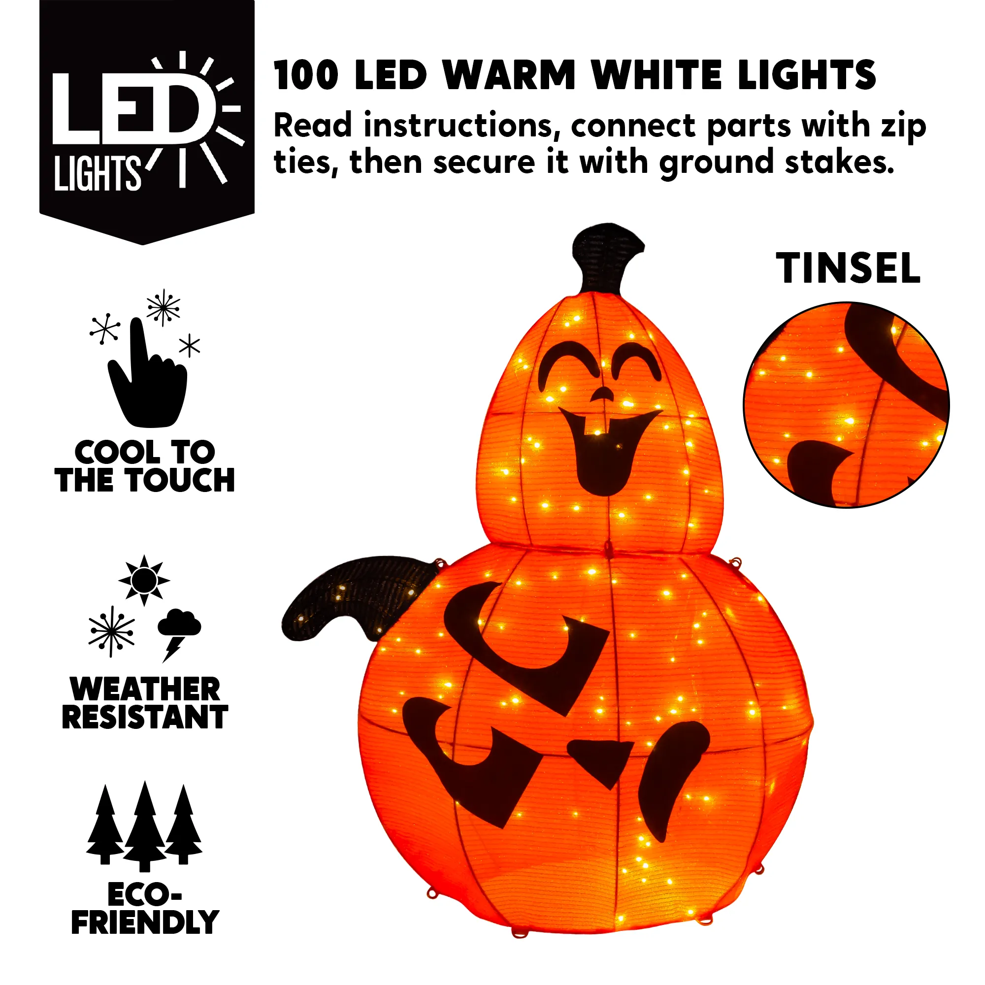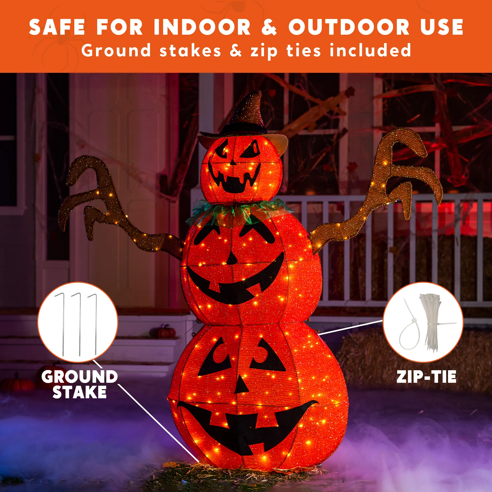 Joiedomi LED Yard Lights – Tinsel Stacked Pumpkins (3 Heads) 5ft – Halloween Decorations