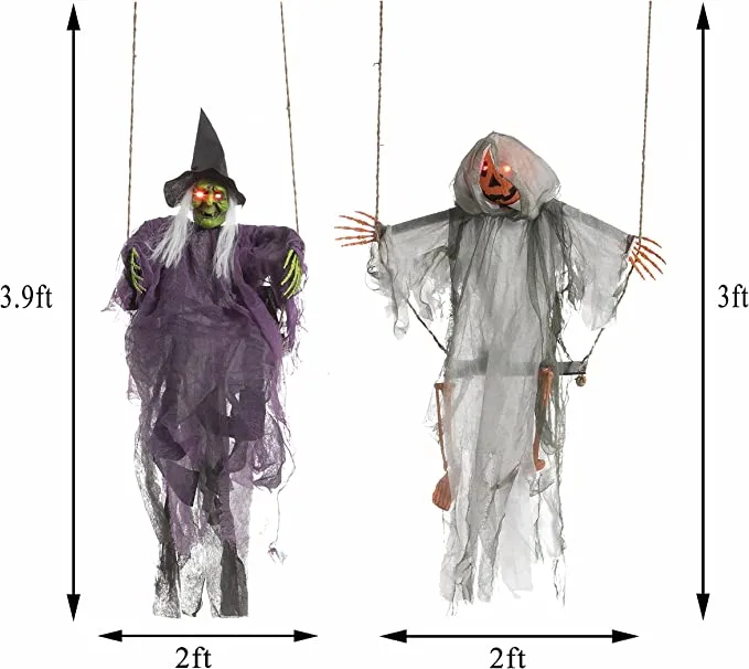 Joyin 2Pcs Halloween Lighted Swinging Pumpkin & Witch – Halloween Decorations