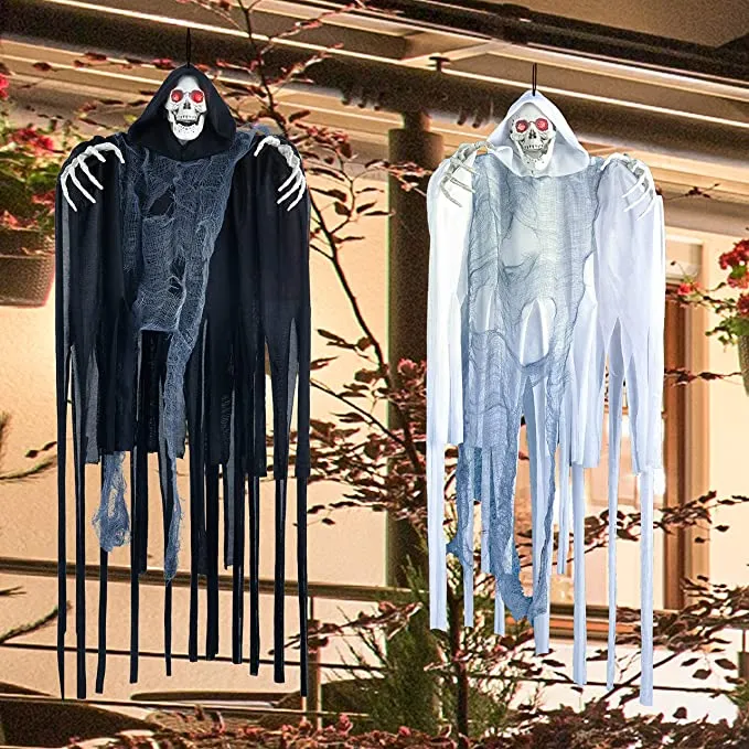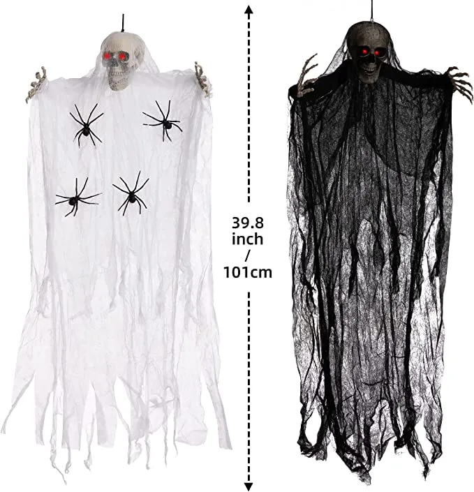 Joyin 2Pcs Lighted Hanging Skeleton Ghosts (Black & White) 40in – Halloween Decorations