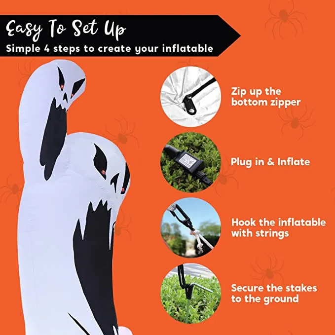 - ENDLESS FUN. Our scary inflatable halloween decorations features built-in multicolored flashing LED lights. This halloween ghost inflatable will help scare your neighbors and friends and pop the party with its creepy light and looking.