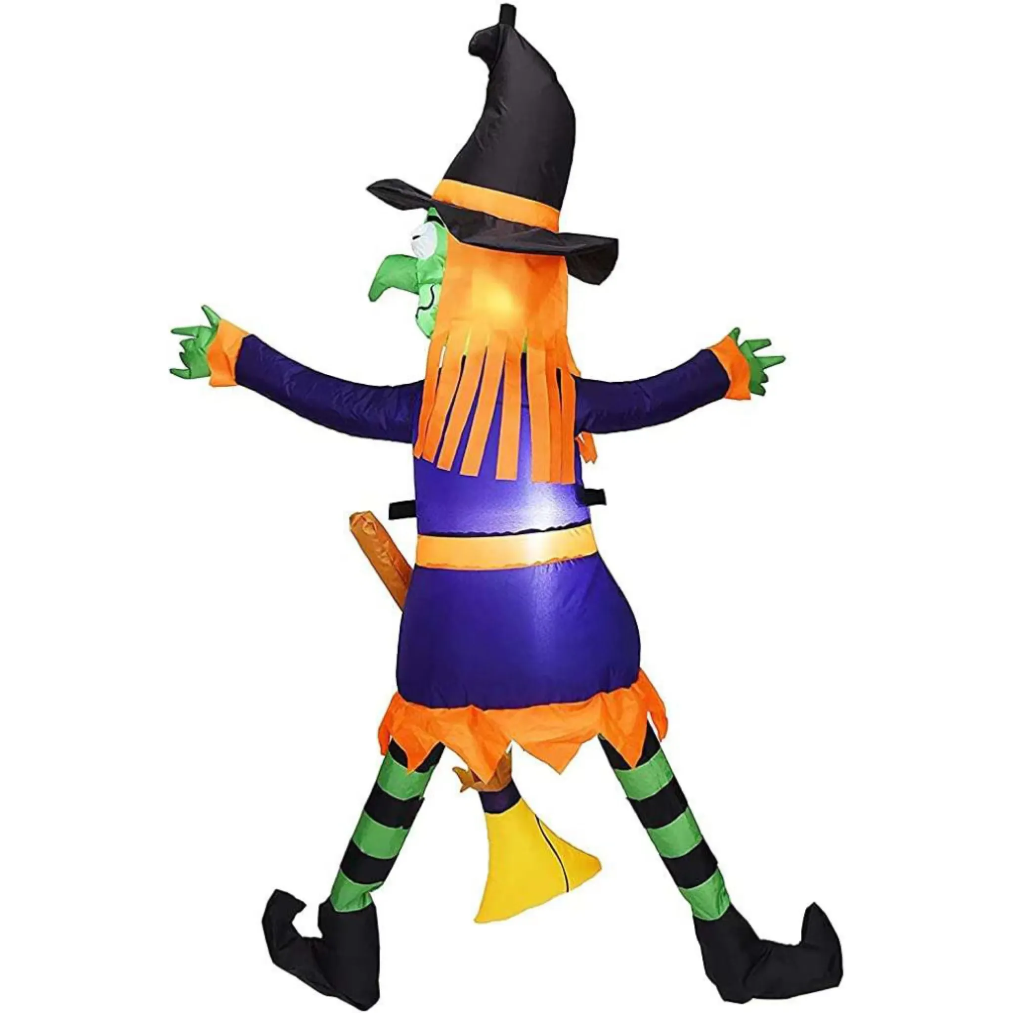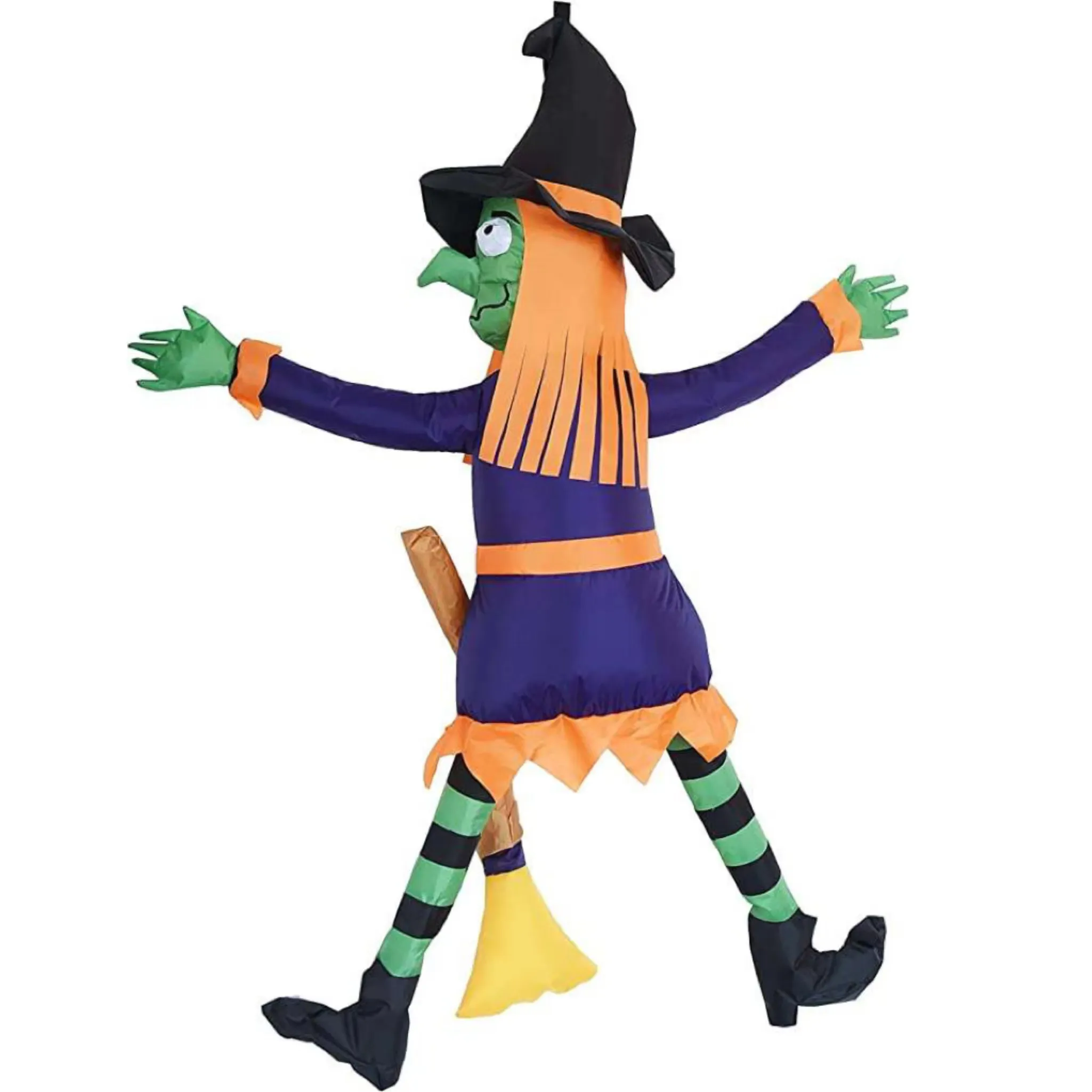 - 4 feet long crashing witch onto wall Halloween inflatable comes with extended cords, ground stakes, fastened ropes, built-in sandbags, and a plug with ul certification.