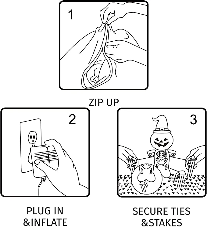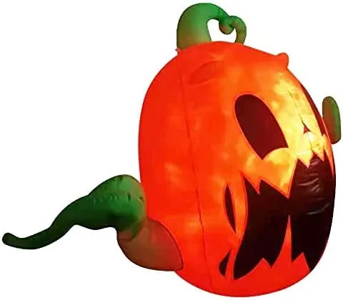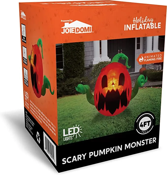 - 4 feet long scary walking pumpkin monster Halloween inflatable comes with extended cords, ground stakes, fastened ropes, built-in sandbags, and a plug with UL certification.