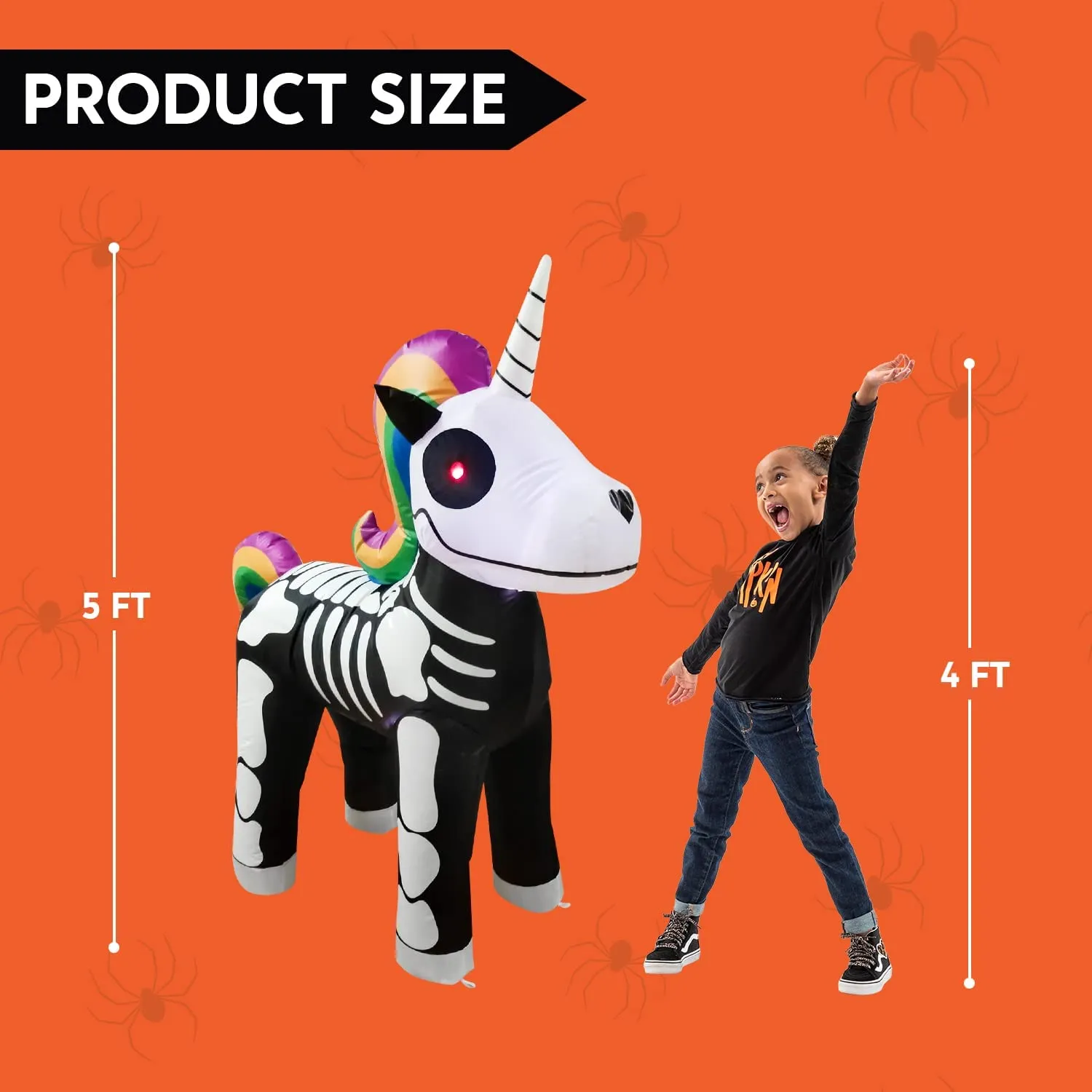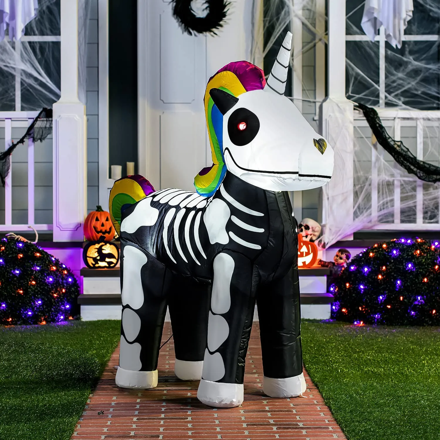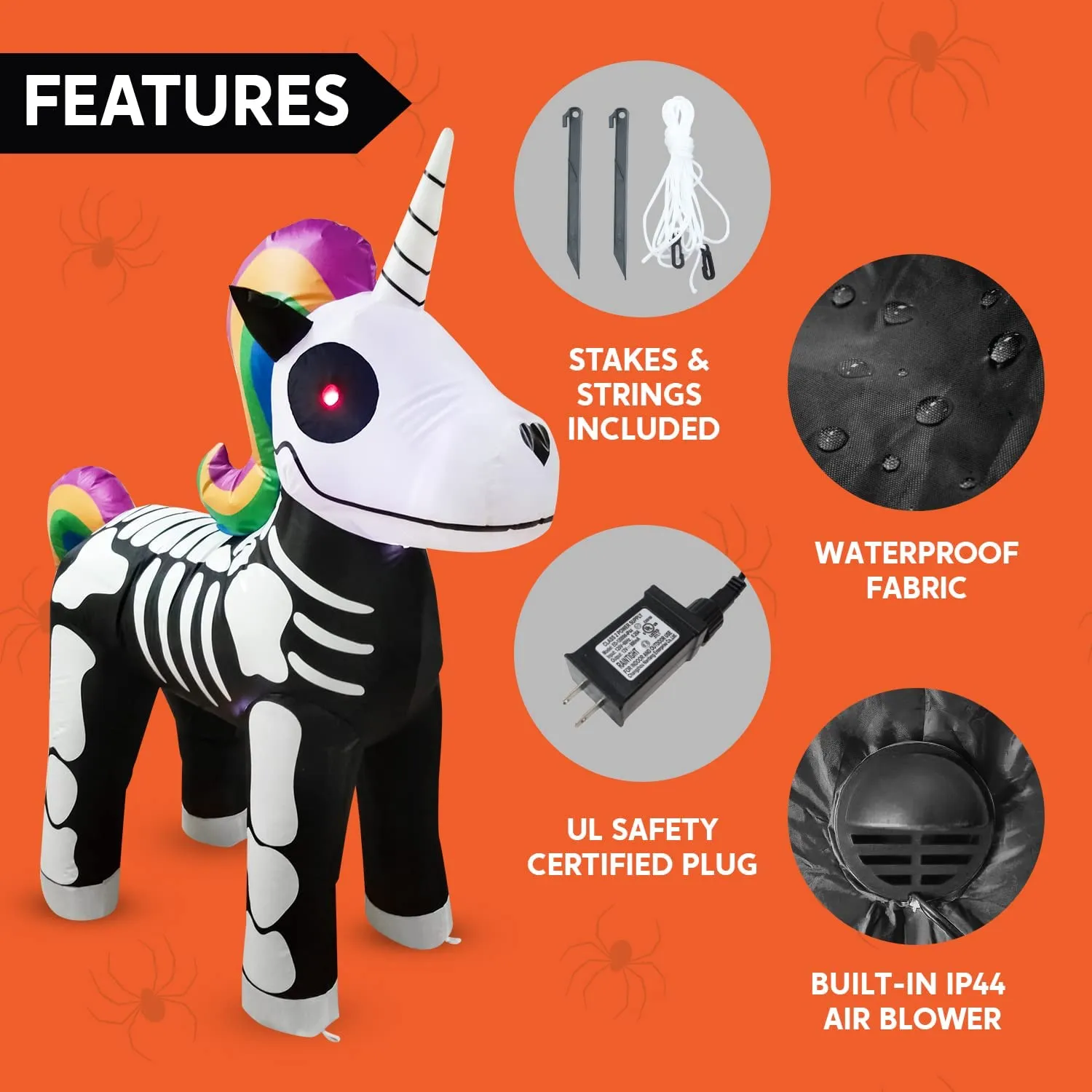 There are different types of skeletons. Yes, some are just more amazing than others, like this one. This skeleton unicorn inflatable, which is known for being a legendary addition to Halloween party décor, is made to resemble a very skeletal unicorn. This terrifying foal has substituted frights and frigid fall air with rainbows and sunlight and is sure to bring smiles when added to a homemade photo booth. Decorate your home with this cheery adorable unicorn inflatable! It’s a fantastic light-up Halloween décor that will captivate guests both children and adults will adore it. Check out additional halloween inflatables today!