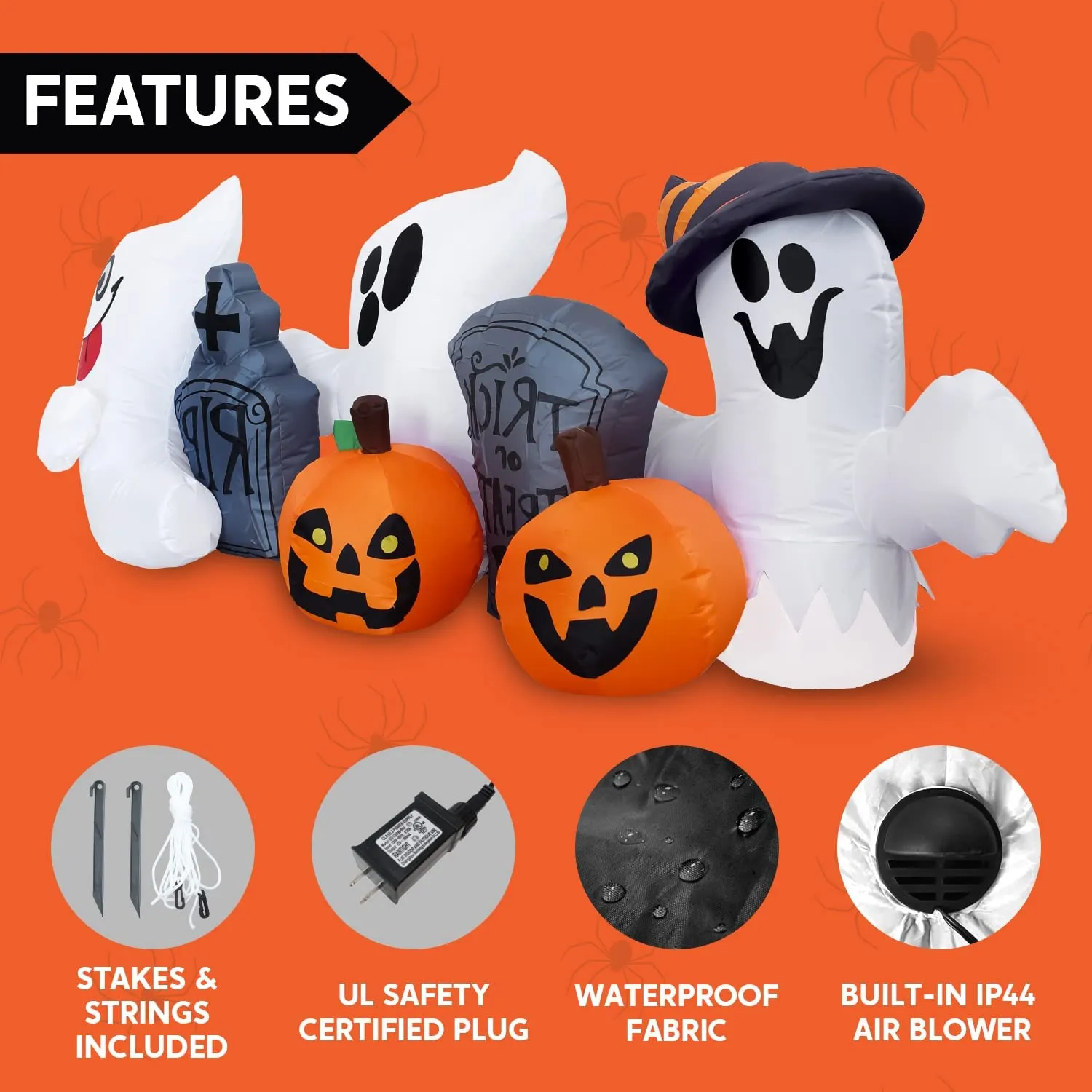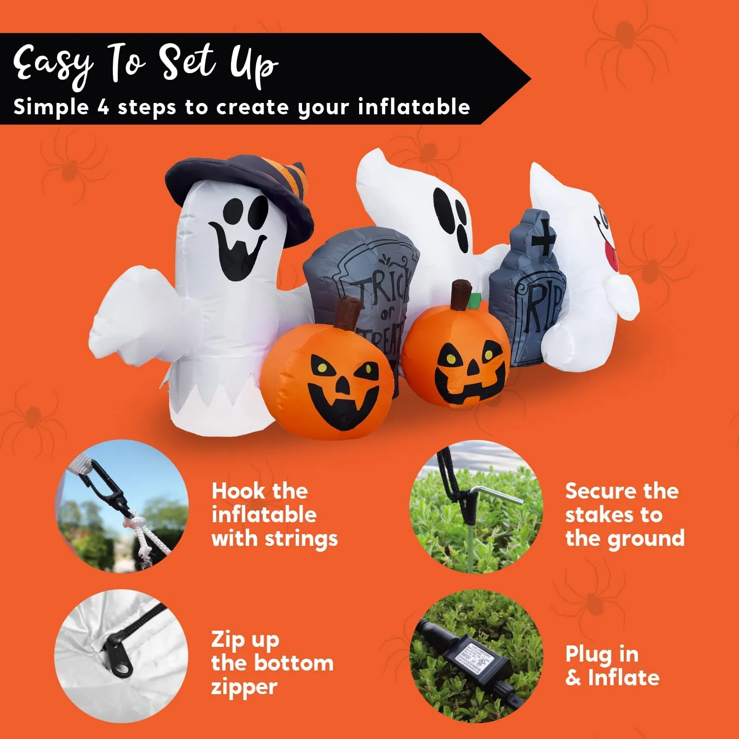 - 6 feet long horizontal tombstones with ghosts inflatable come with extended cords, ground stakes, fastened ropes, built-in sandbags, and a plug with ul certification.