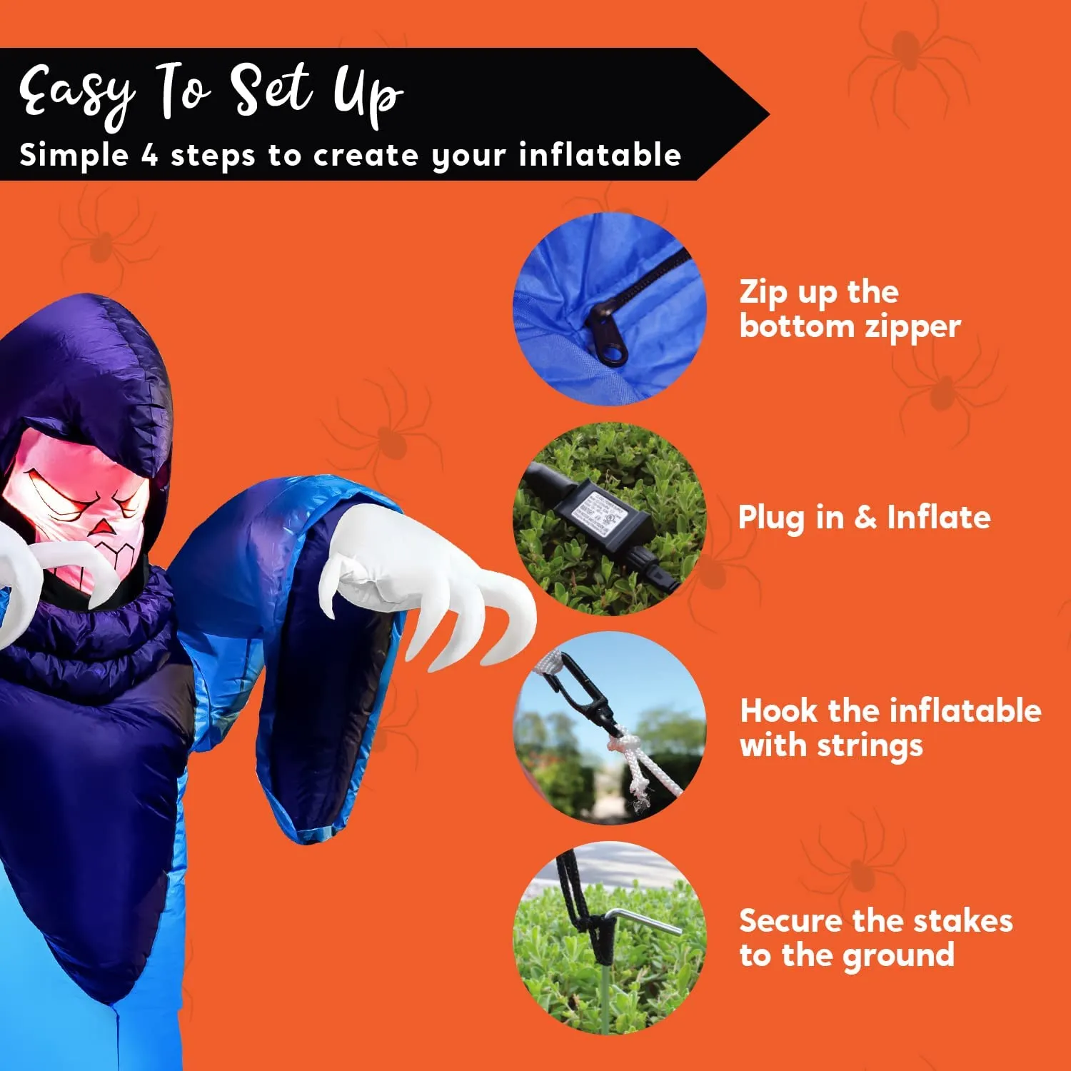 When you include this Inflatable Warlock Decoration in your order, Halloween dread will ensue! This massive sorcerer is prepared to maintain the reputation of a warlock with its unique style. Blue, white, and purple are among the vibrant color choices that prevent the conjurer from disappearing too far into the terrifying shadows. The inflatable warlock’s torso is lit from within, maintaining the appearance of his menacing height and piercing eyes. As they approach, neighbors out for a stroll or participating in a Halloween-themed candy hunt will be able to see them, making the encounter less frightful and more in line with what a warlock would desire. An entertaining and useful Halloween blowup? Why not include this enormous sorcerer in your order right now?