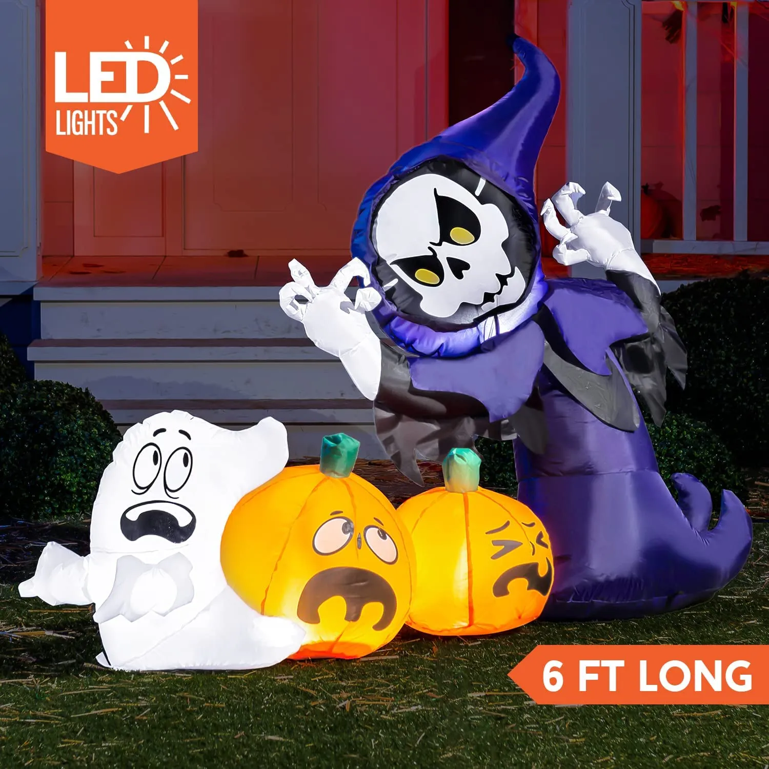 This Haunted House Inflatable has a creepy ghost that emerges from behind a tombstone. It’s a terrific idea to decorate your front yard for Halloween with the Air Blown Haunted House with Dead Tree. Trick-or-treaters can enjoy a Halloween light show while also catching a glimpse of a ghostly figure emerging from the gravestone. Wait a little bit and don’t block the fan, please. Perfect for Halloween outdoor yard and garden decor, trick-or-treat party decorations, Halloween night events, Halloween costume parties, haunted house decor, and more.