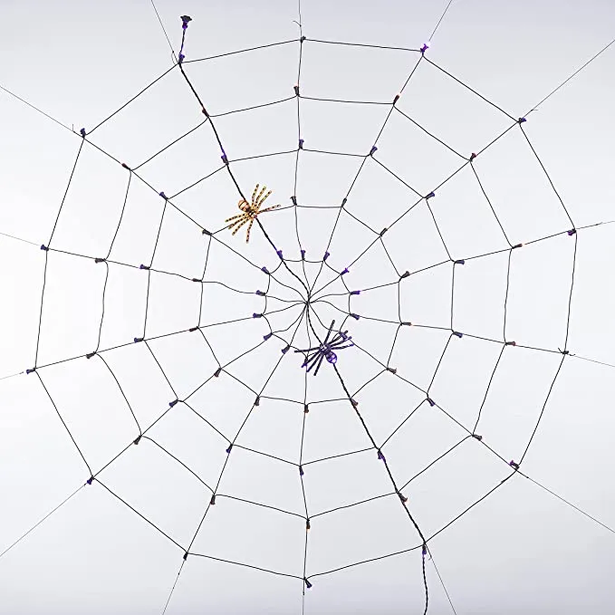 - [halloween decorations outdoor] – our Halloween decor includes 1 pc Halloween purple and orange led light-up spider web with 2 fake spiders. 59 inches spider web, and vivid fake spiders! Attract and spook your neighbors!