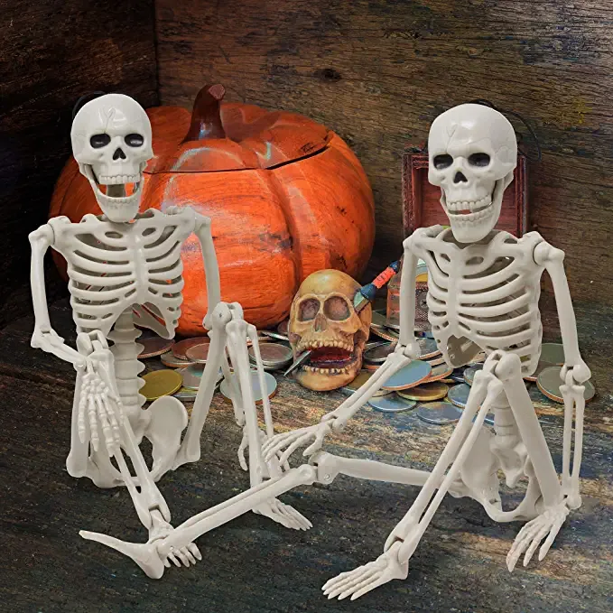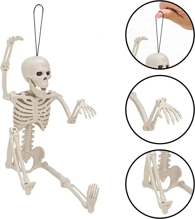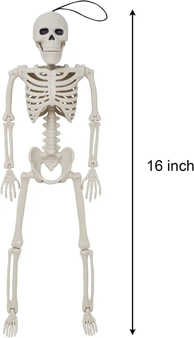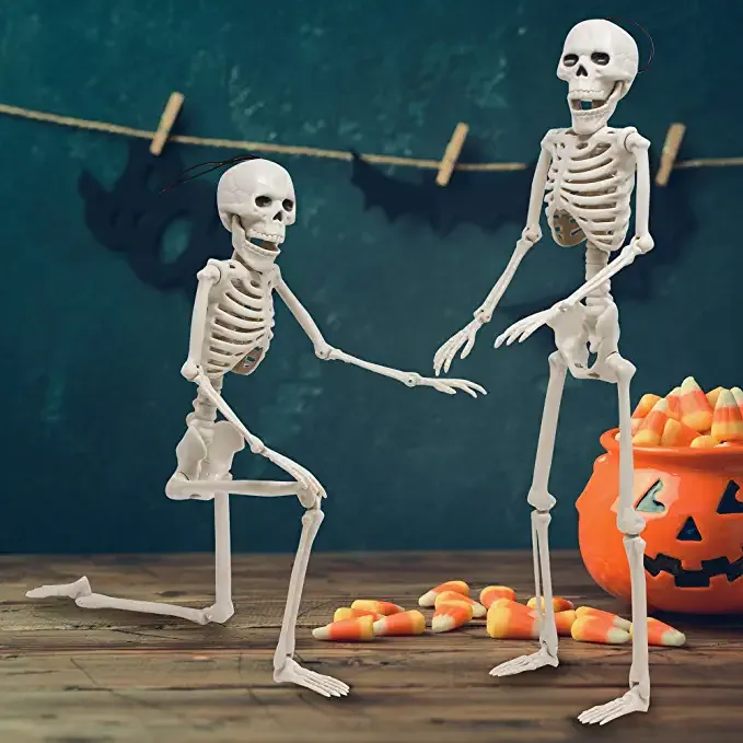 • REAL FUNCTION. Human Skeleton Model Halloween Skeleton Decorations with Posable Joints Skeletons for Halloween Party. It is made of hard plastic and painted to resemble the bone color, has a complete and realistic chest, and full body offers a variety of realistic poses to make each Halloween Party extra festive and spooky.