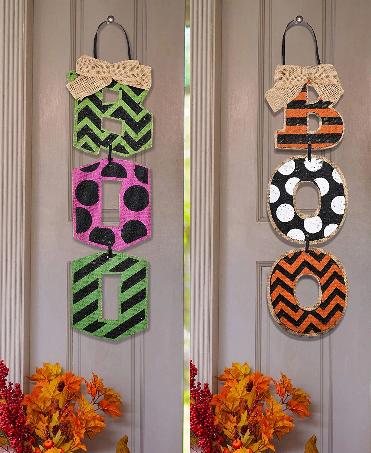 - Our Halloween Spooky Door Design includes an 18″ x 16″ decoration with two unique designs; Burlap and Ribbon