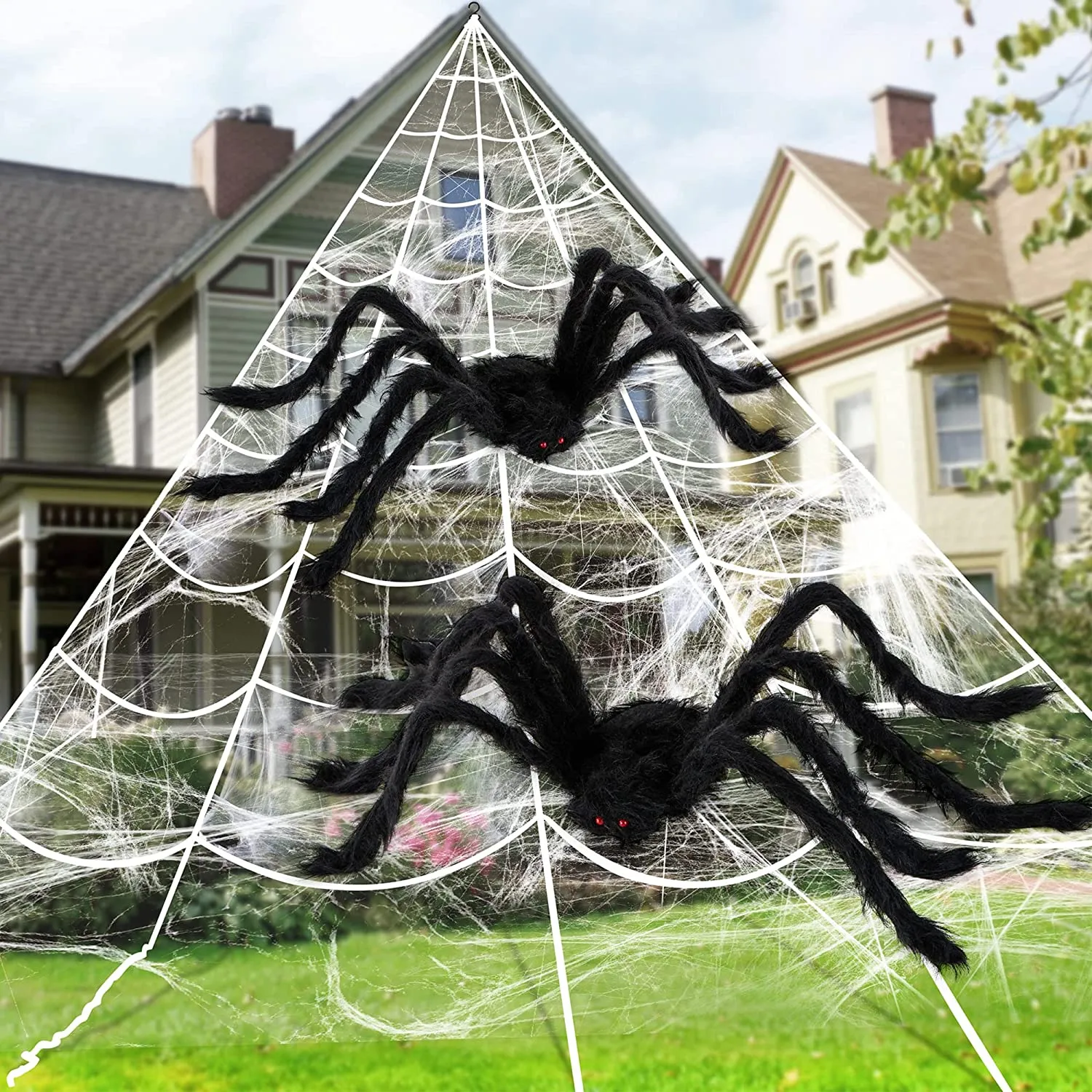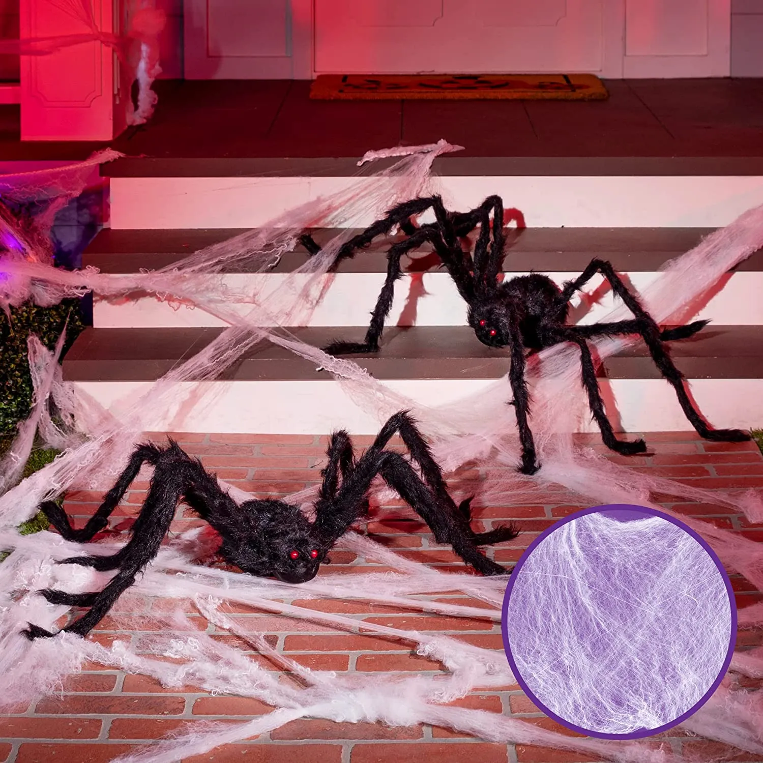 - AWESOME HALLOWEEN DECOR. Our Halloween Cobwebbs Outdoor includes Cotton that can stretch to an 800sqft spider web with 2 realistic spiders (one 120cm/47in; one 90cm/35in)