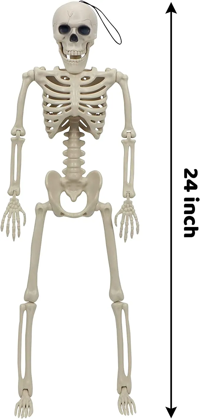Add the finishing touches to your Halloween decorations this year with these hauntingly good Skeleton Decorations. With 2 pieces included, your home will be ready to scare in no time! Each skeleton measure 24″ tall and will give your haunted house that classic Halloween touches everyone loves. The posable joints make them moveable and versatile, allowing you to set them up in endless ways to give your haunted house a classic Halloween touch everyone will love! Meet US toy standards. Safety test approved. These realistic skeletons are designed to look as though they just jumped right out of a graveyard and will give any full-sized (or smaller) skeleton-themed haunted house and Halloween party the perfect touch of dreary flair. This skeleton will make your home more beautiful and lifelike. Painting is so beautiful, like a real person. It is simple to assemble and disassemble. Perfect for events like weddings, haunted homes, and parties where a little eerie impact is desired.