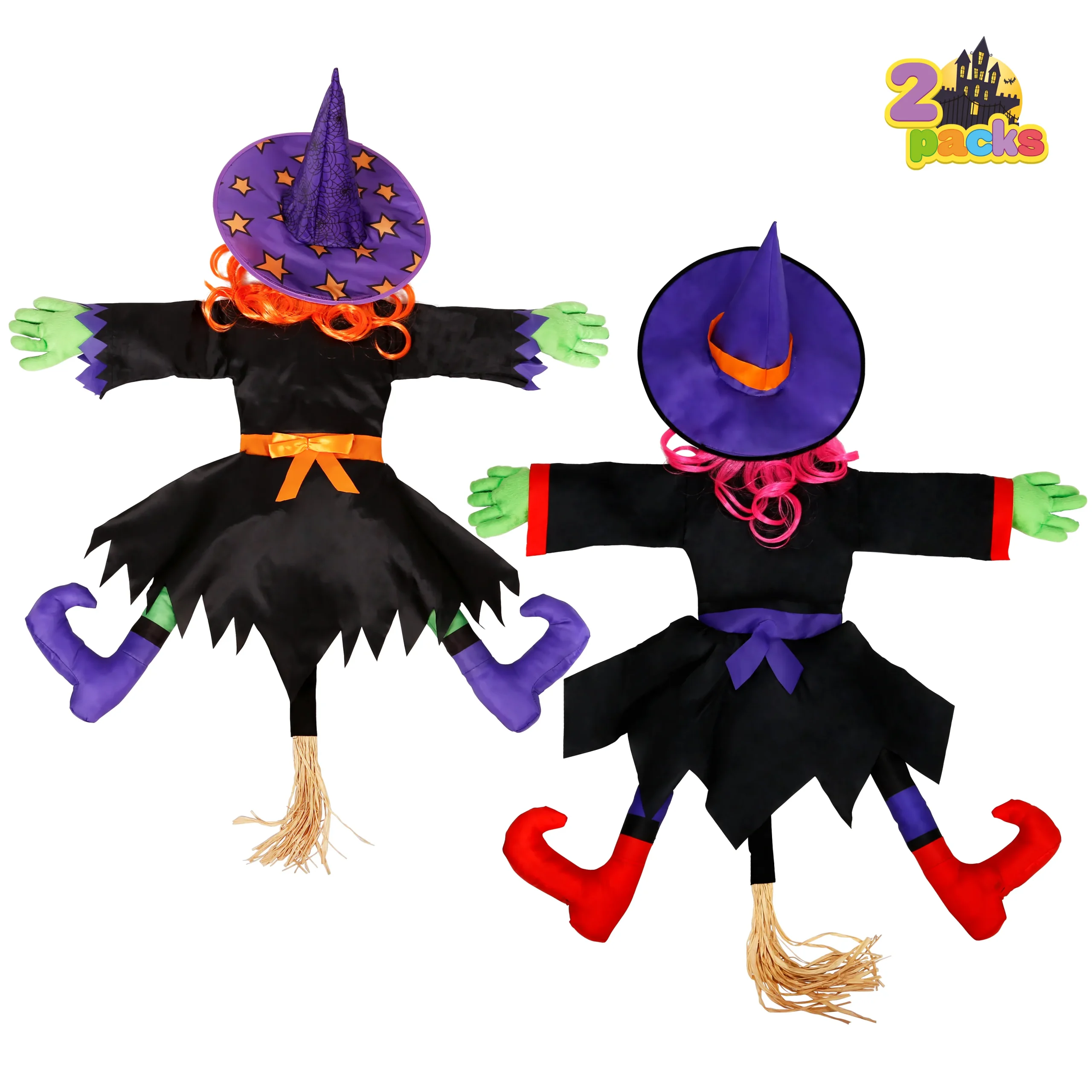- Our 2 pack crashing witch into tree Halloween decoration is the ideal addition for your house to amuse your friends, neighbors, and guests. One witch measures 44″ high, and one measures 48.8″high.