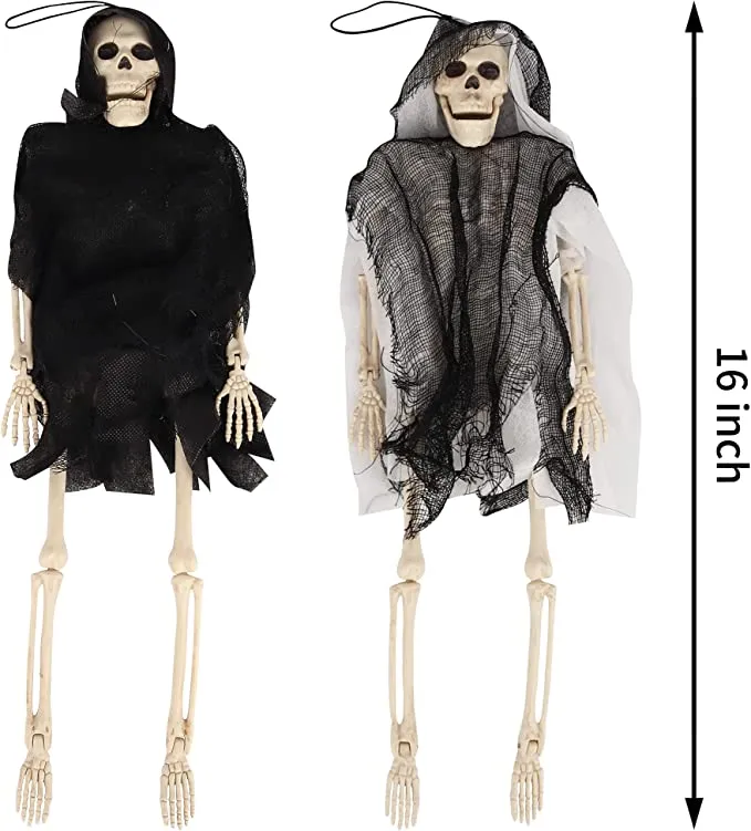 - Our set of poseable skeleton grim reapers comes in 2 pieces, white and black, measuring 16 inches each.