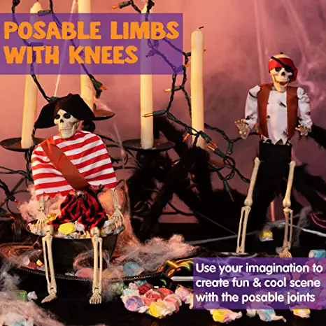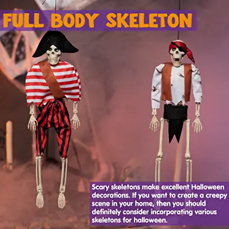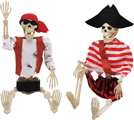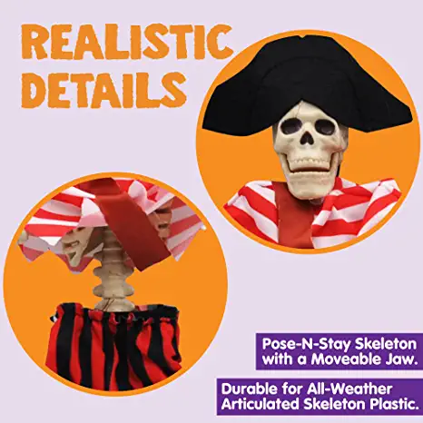 • These Pirate Skeletons provide lots of laughs and screams that would surely make this year’s Halloween memorable! Perfect for Halloween Decoration, Haunted House Accessories, Halloween Party Favors & Graveyard Decoration! These can also be perfect props for Halloween street carnival, Halloween Street Parade, Trick-or-Treat, and any scary Festival Activities!