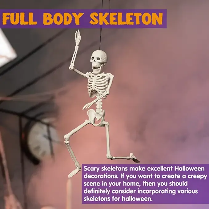 • Halloween Skeleton Decorations Includes 2 Sets of 16″ Posable Full Body Hanging Halloween Skeletons.