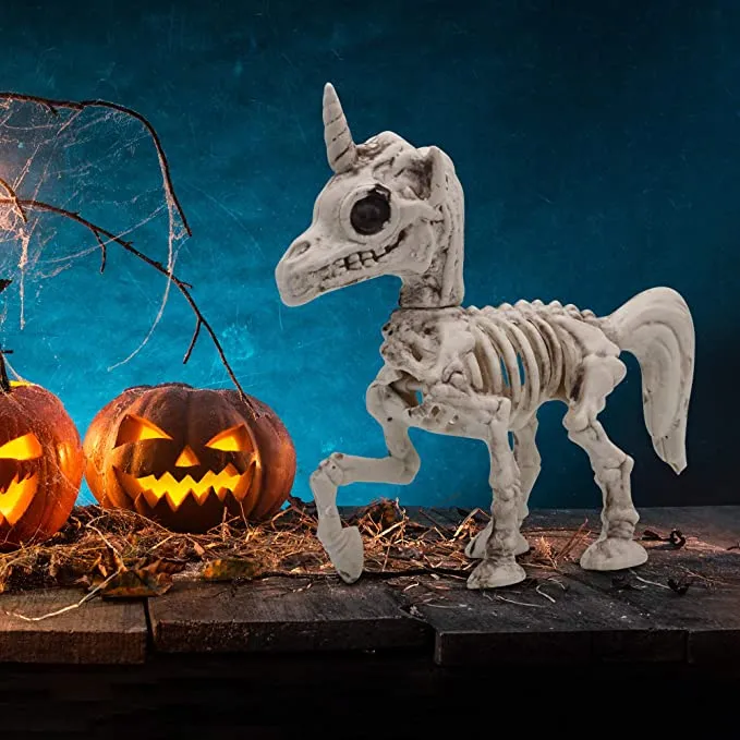 • Unicorn Skeleton Halloween Decoration Includes 2 Pieces 7″ Tall Posable Unicorn Skeleton.