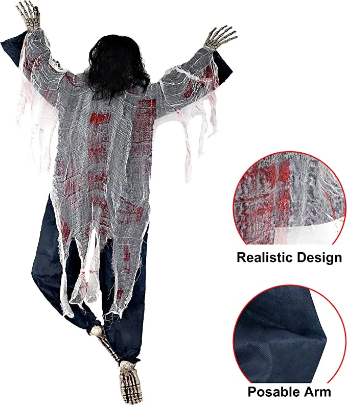Your front yard will instantly be filled with the festive mood of Halloween thanks to the 35.4-inch climbing zombies with authentic black hair, clothes, and a skeleton body. Your Halloween decorations will look fantastic with the climbing zombie decoration. Users can change the pose of the dangling ghoul’s posable limbs. If you hang these hanging Halloween decorations outside your house, trick-or-treaters will believe that there are actual zombies on your lawn. The Halloween zombies’ limbs are bendable, so you may position them however you like to achieve the desired effect. The decoration also has hooks on their hands, making it simple to hang them from a windowsill, roof, or fence in front of a door.