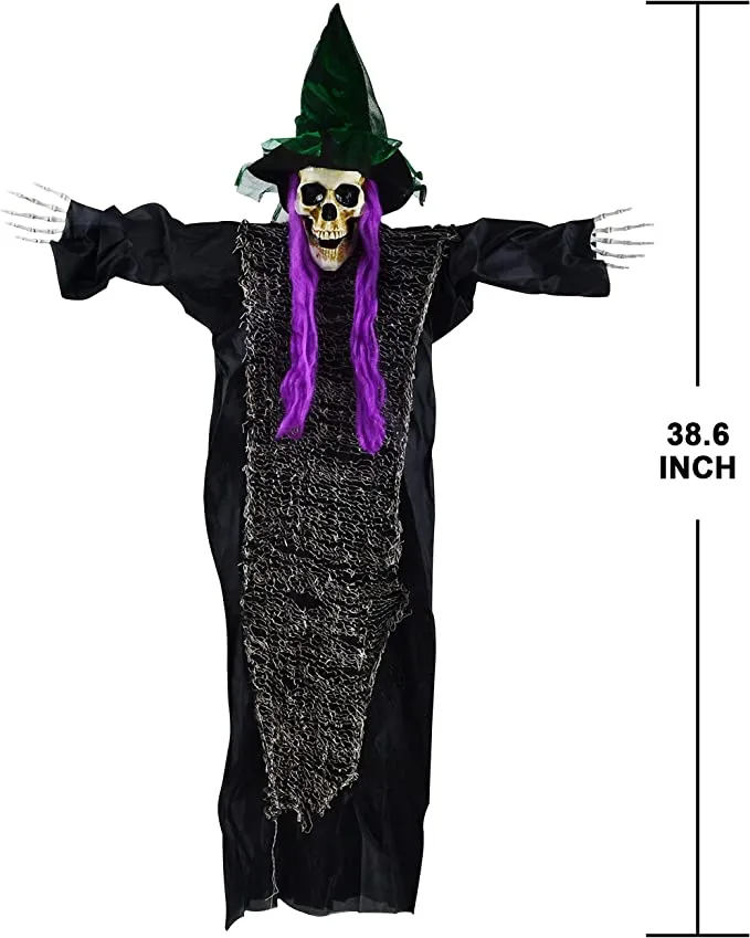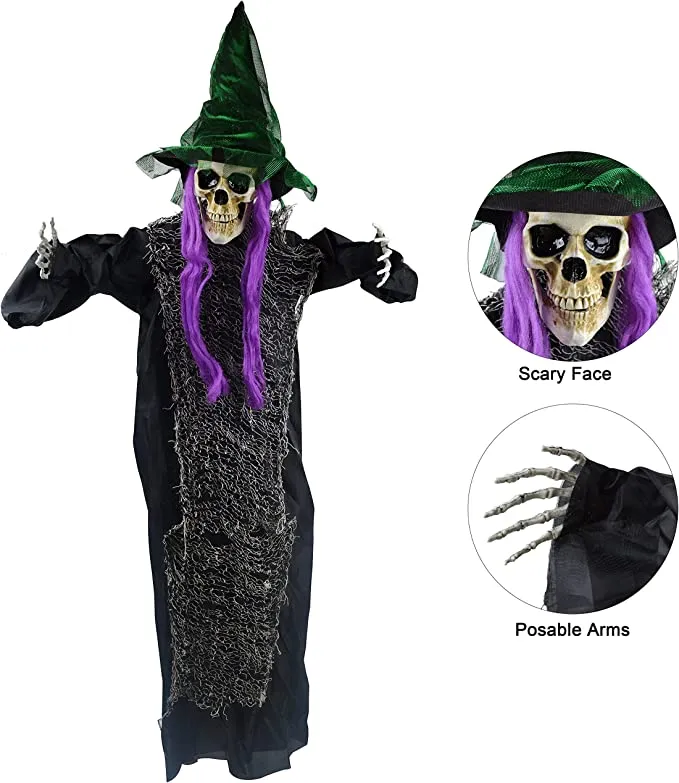 - The hanging skeleton witch decoration set provides a fun experience to house guests and trick-or-treaters.