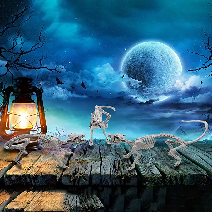 This fun rat skeleton decoration is great for all year round, not just Halloween. The plastic prop makes a fun addition to themed parties, Halloween decorations, and more. The rat skeleton is 25″ tall and includes 3 pieces of 14″ tall posable skeletons with bendable tails that can be put into different positions. This skeleton displays a bendable tail and moveable head and jaw. The realistic-looking bodies look like they just crawled out from under a tombstone, while the bendable tails and moveable heads are sure to glower at you night and day. With this rat skeleton, you can create diverse magic puppets for parties, or use them for decorating your home, office, window display, etc. Check out more skeleton decorations today!