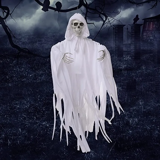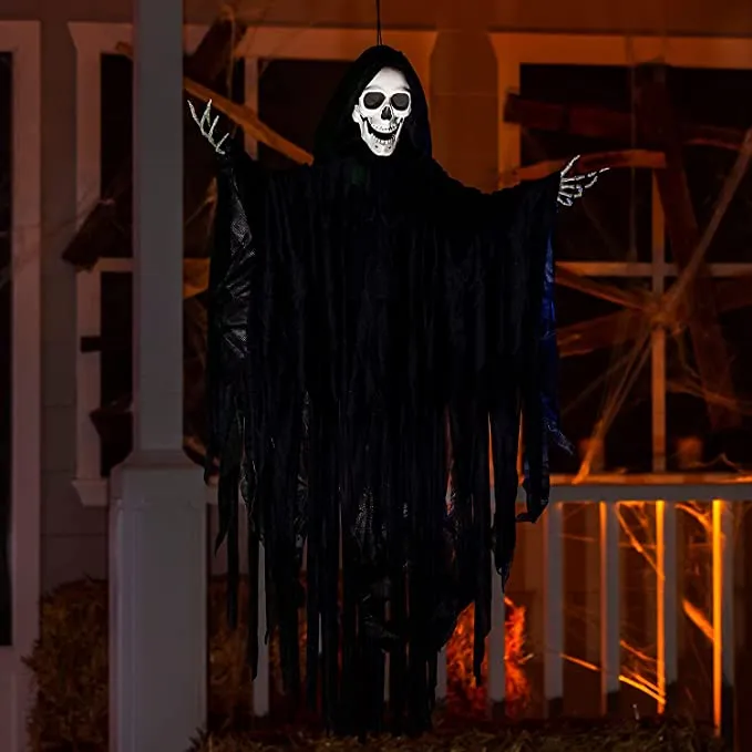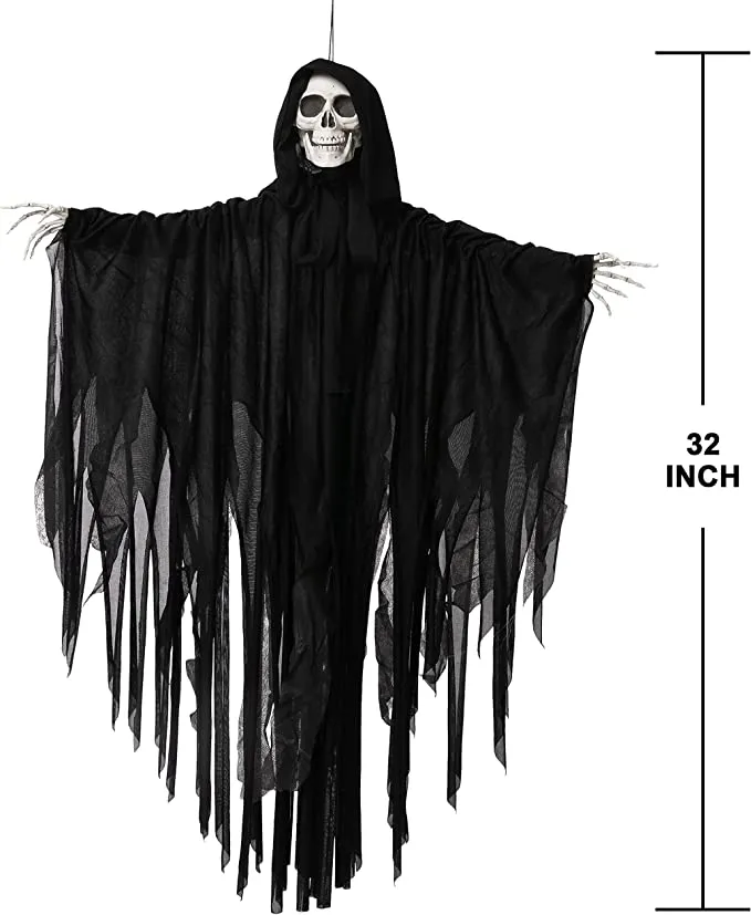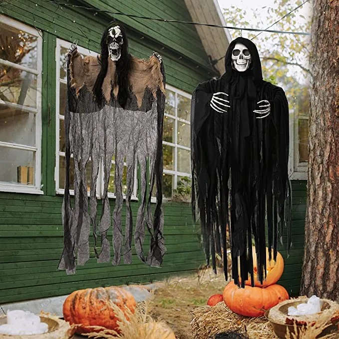 - Our Halloween decor includes a 3 pack of grim reapers with different colors such as black, white, and brown. This measures 32 inches.