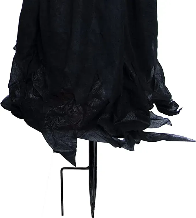 These witch yard decorations have a hat with a buckle and different hat strap colors in orange, green, and purple. Our Halloween yard decor has a colorful cloak on the body, and with the process of light changes. The stake also has a bendable neck that allows you to adjust the angle of the head so it can face in any direction you want. These witch yard stakes are durable and reusable for many years. They are also easy to assemble, you can just place them upright on the ground and they will stand up on their own. It’s perfect for your Halloween yard decoration!