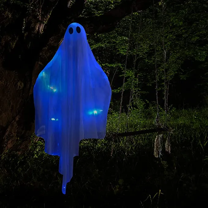 • Light Up Hanging Ghost Decorations include 47 inches Light up hanging ghost is your perfect addition for a haunted ambiance. This Halloween prop featured creepy blue light that looks like it’s ready to scare your guests, friends, and trick-or-treaters
