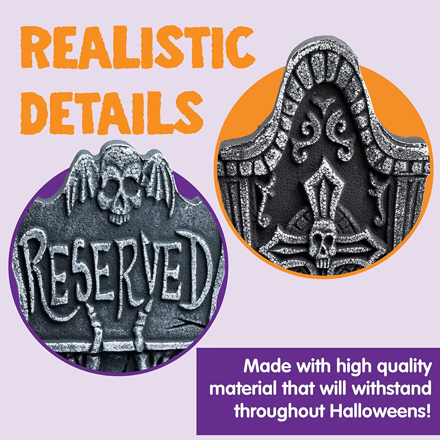- UNIQUE DESIGN. Halloween Tombstones lightweight tombstones give your yard a deadly appearance, create a creepy and scary atmosphere for any Halloween events, spooky entertainment, haunted houses party, and other themes occasions