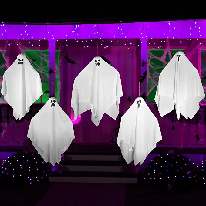 • Hanging Ghost Halloween Decorations is featured with traditional scary Ghost faces and white semi-sheer mesh blanket cover