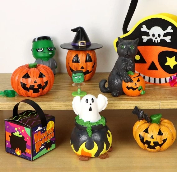 - These Halloween Figurines are made of resin, these highly detailed Halloween costume-clad figurines look so adorable and will surely catch everyone’s attention when placed around the house! This is a great addition to your Halloween Home Decoration.