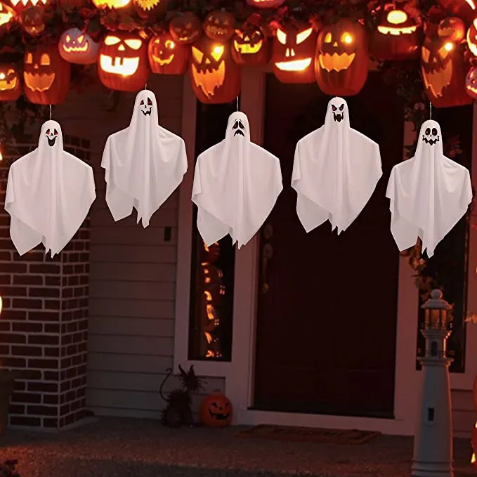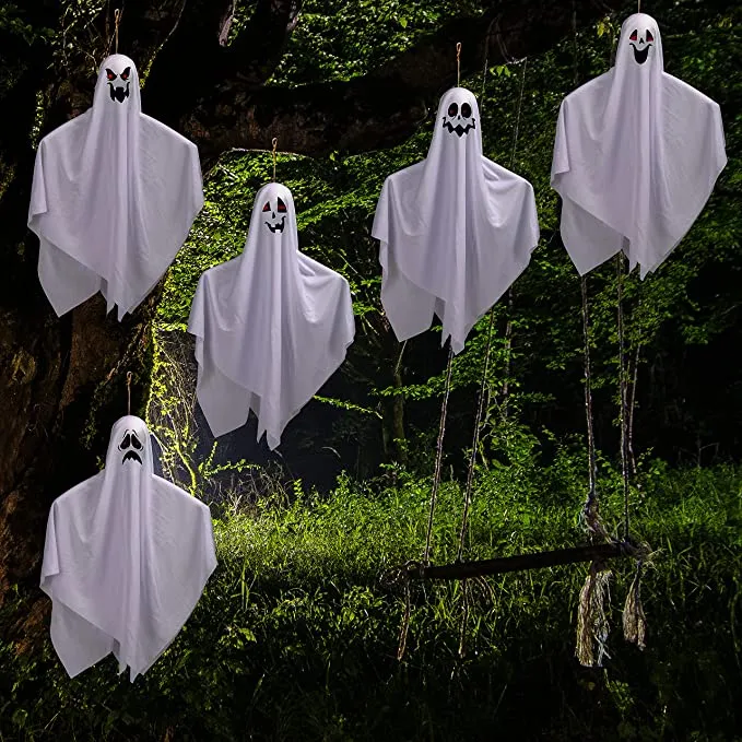 - Our 27.5 inches cute Halloween hanging ghost decor includes 5 pack Halloween hanging ghosts with 5 different scary facial expressions.