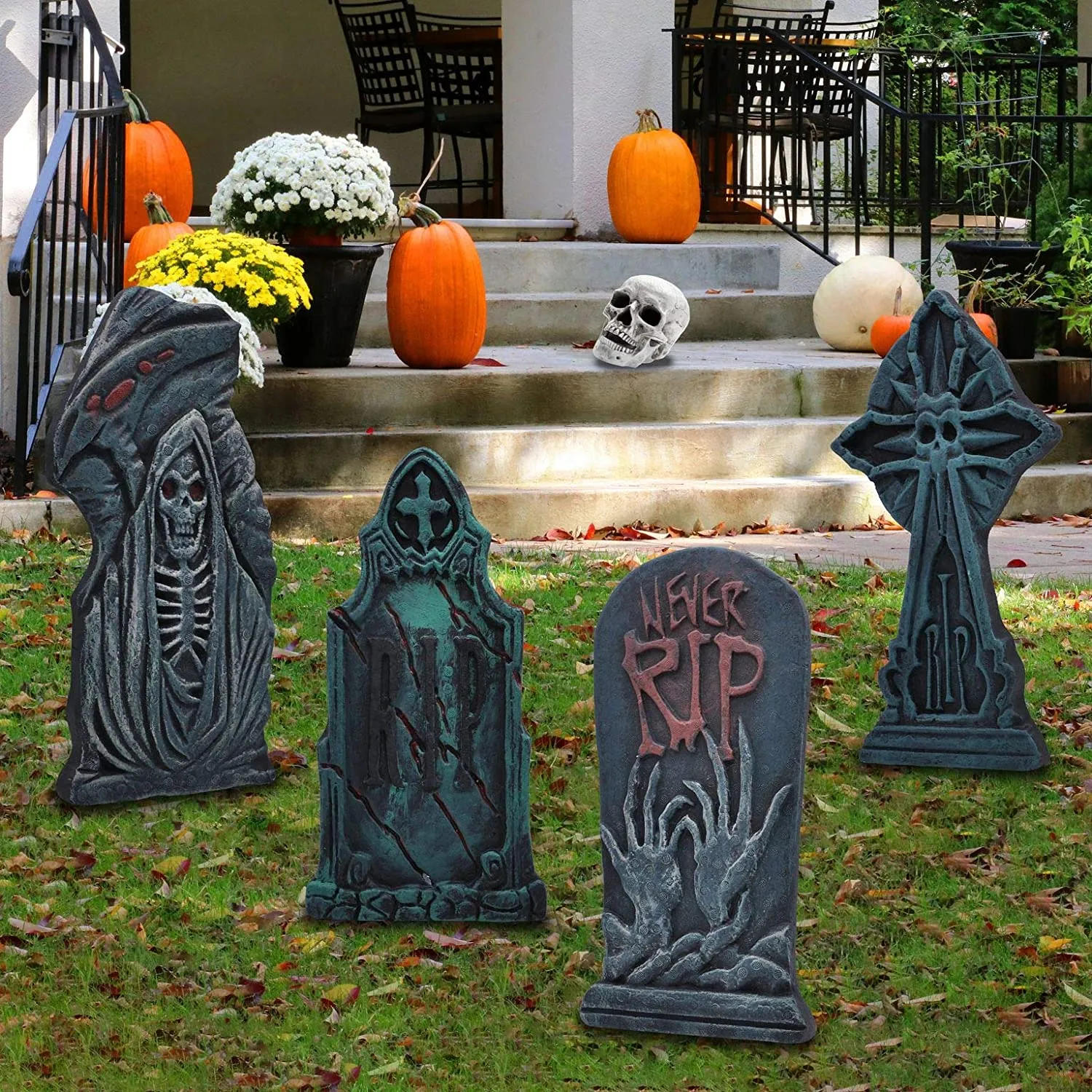 - Our Halloween tombstones lightweight tombstones give your yard a deadly appearance, create a creepy and scary atmosphere for any Halloween events, spooky entertainment, haunted houses party and other themes occasions