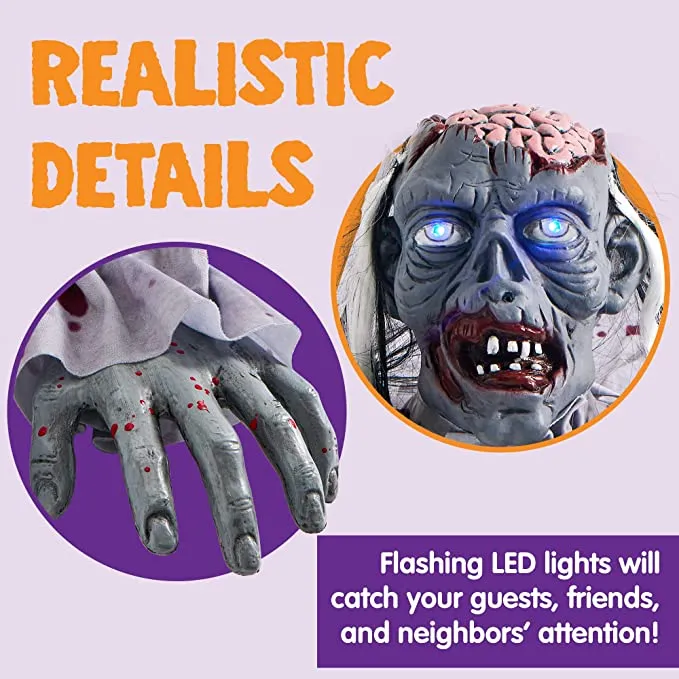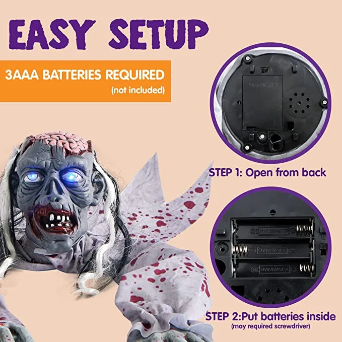 - REAL FUNCTION. This crawling zombie Halloween decoration is motion activated grey head zombie groundbreaker with light-up blue eyes and creepy sound, 3 AAA Batteries Required. Batteries Not Included. Our spine-chilling groundbreaker zombie will be the talk of the block!