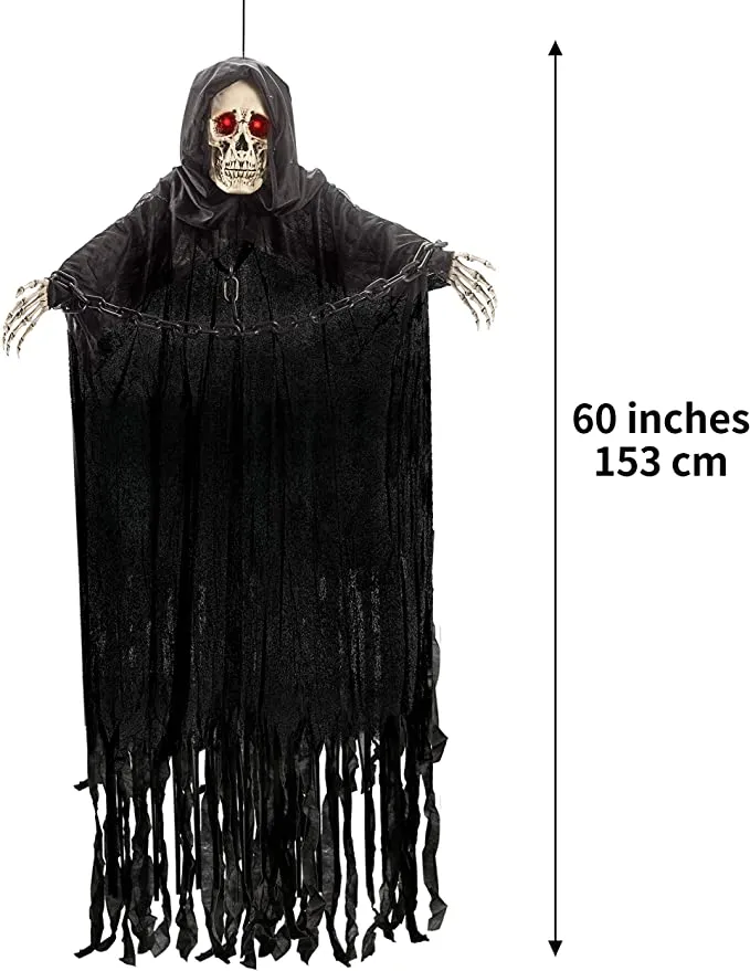 • Great Halloween Grim Reaper Decoration for Halloween-themed parties, Indoor, and Outdoor Decorations, or Haunted House Decoration! Hang from a tree, a window, or up the pathway that visitors will walkthrough