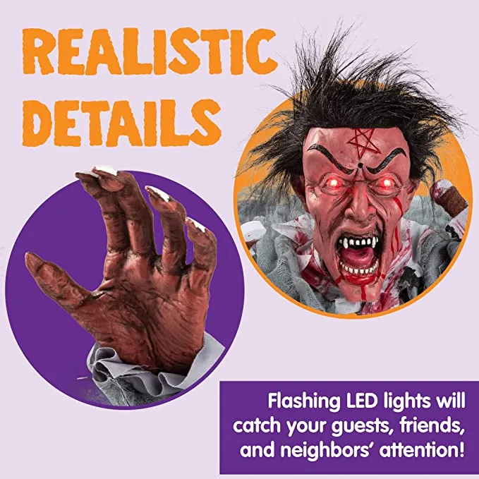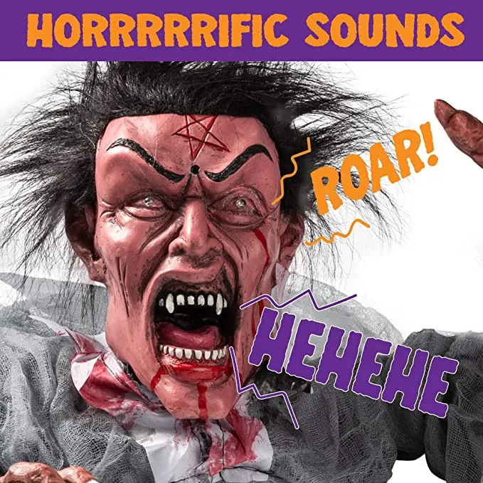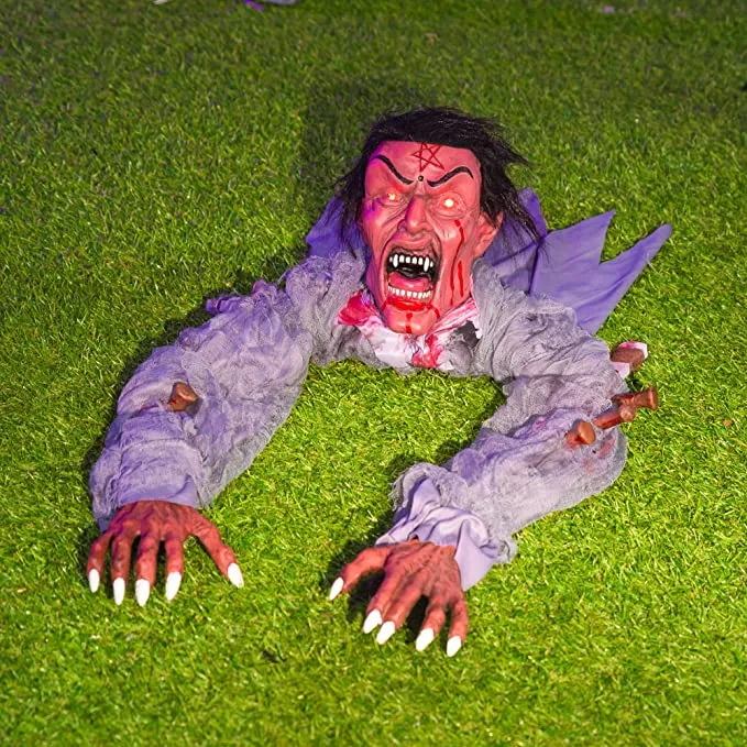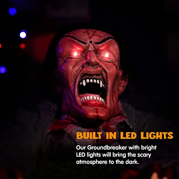 - PERFECT DESIGN. Our animatronic Halloween decorations outdoor scary will scare your visitors and friends on Halloween! This ground breaker for lawn halloween appears to be breaking through the ground to join the living for some spooky fun!