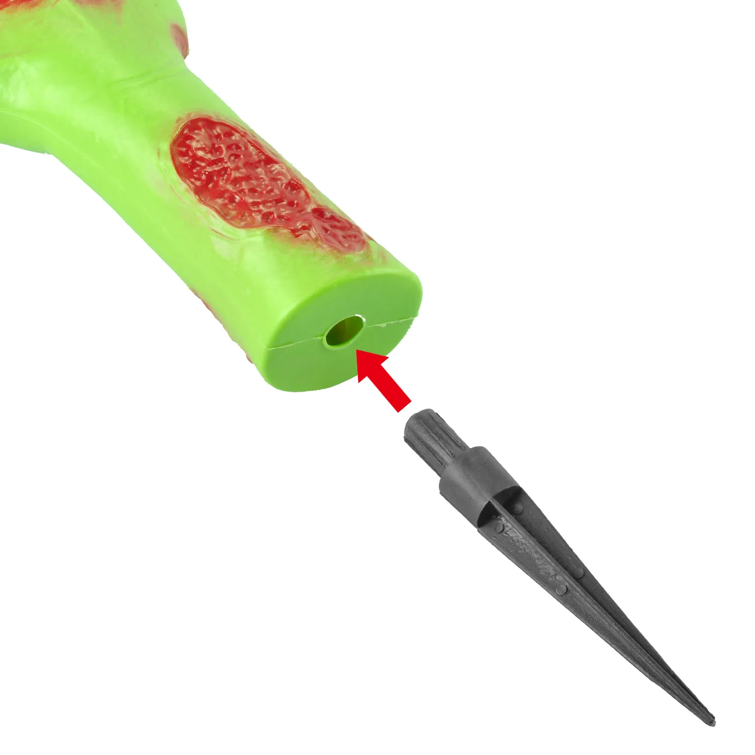 - Our zombie hands with lawn stakes measure 11.4″ .6.3 “