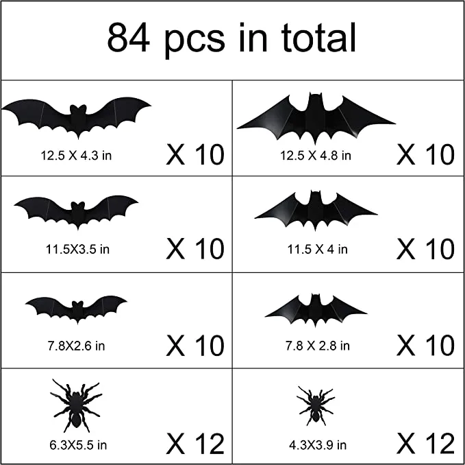 - Super fun ” Halloween 3D wall bats have 3 different sizes and 2 different designs, wall spiders have 2 sizes. Both are larger than similar products.
