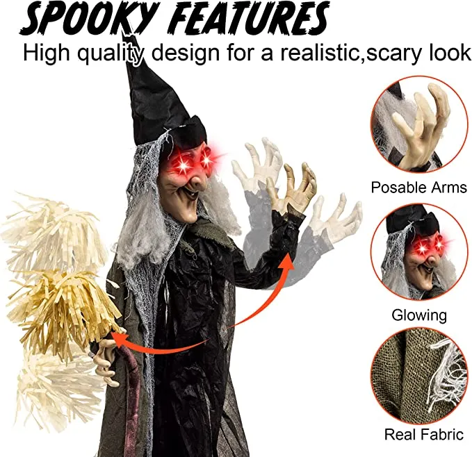 - Our scary witch decorations include a broom. It has flashing eyes and a loud noise activation creepy sound.