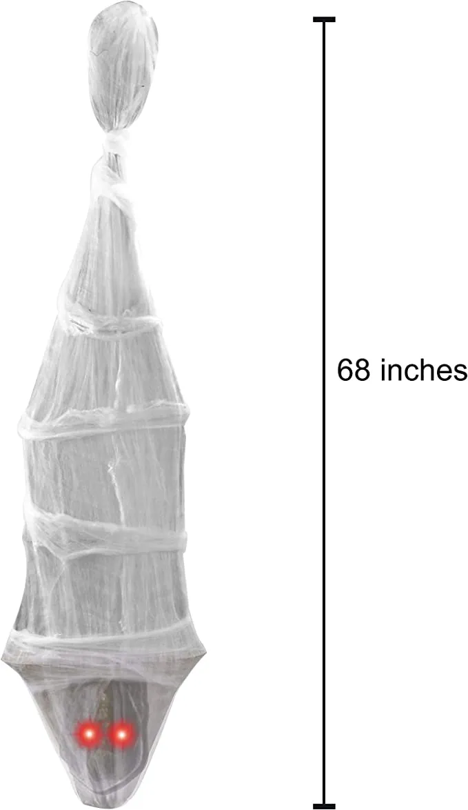 - Our 68″ animated hanging cocoon corpse is the best scary halloween decoration for any halloween events, spooky entertainment, spooky party, haunted houses, and other theme occasions.