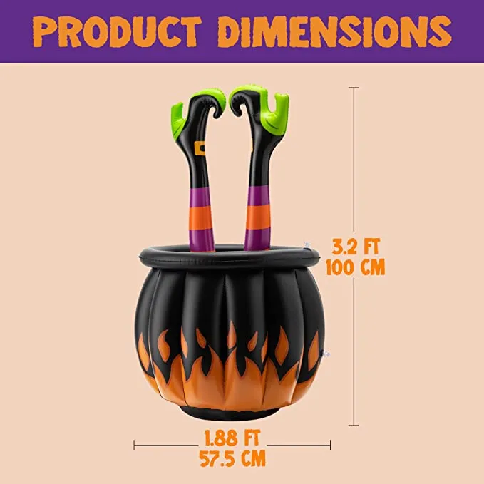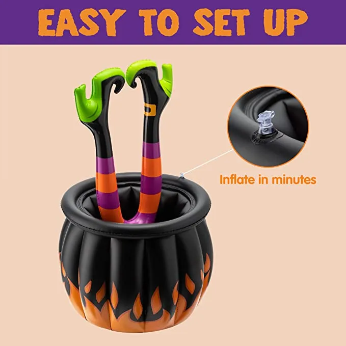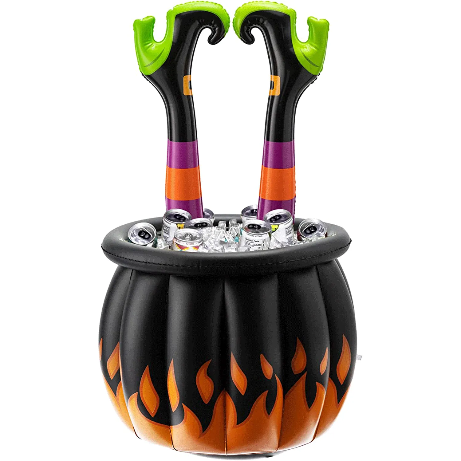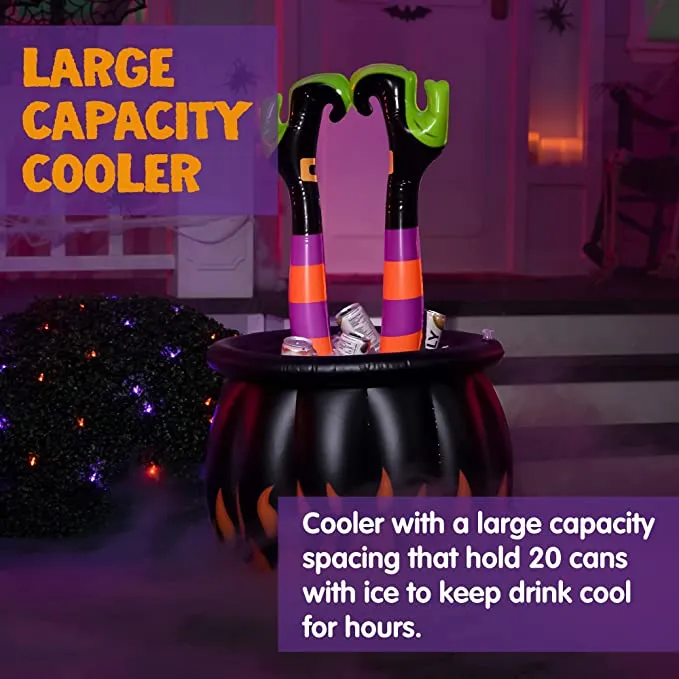 - AWESOME HALLOWEEN DECOR. Our Halloween themed witch inflatable halloween cooler is shaped creatively like the witch’s legs sticking outside of the cauldron while the half part is buried inside.