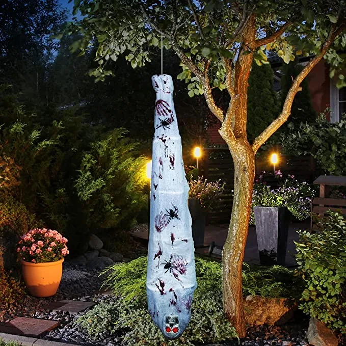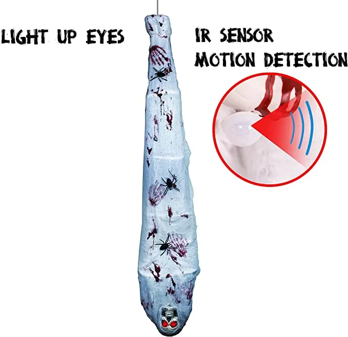 - Design – This Halloween skeleton mummy cocoon corpse design with RED LED eyes and a light-up body, along with an IR sensor and motion detector. This will pop out in the dark and attract attention from surroundings