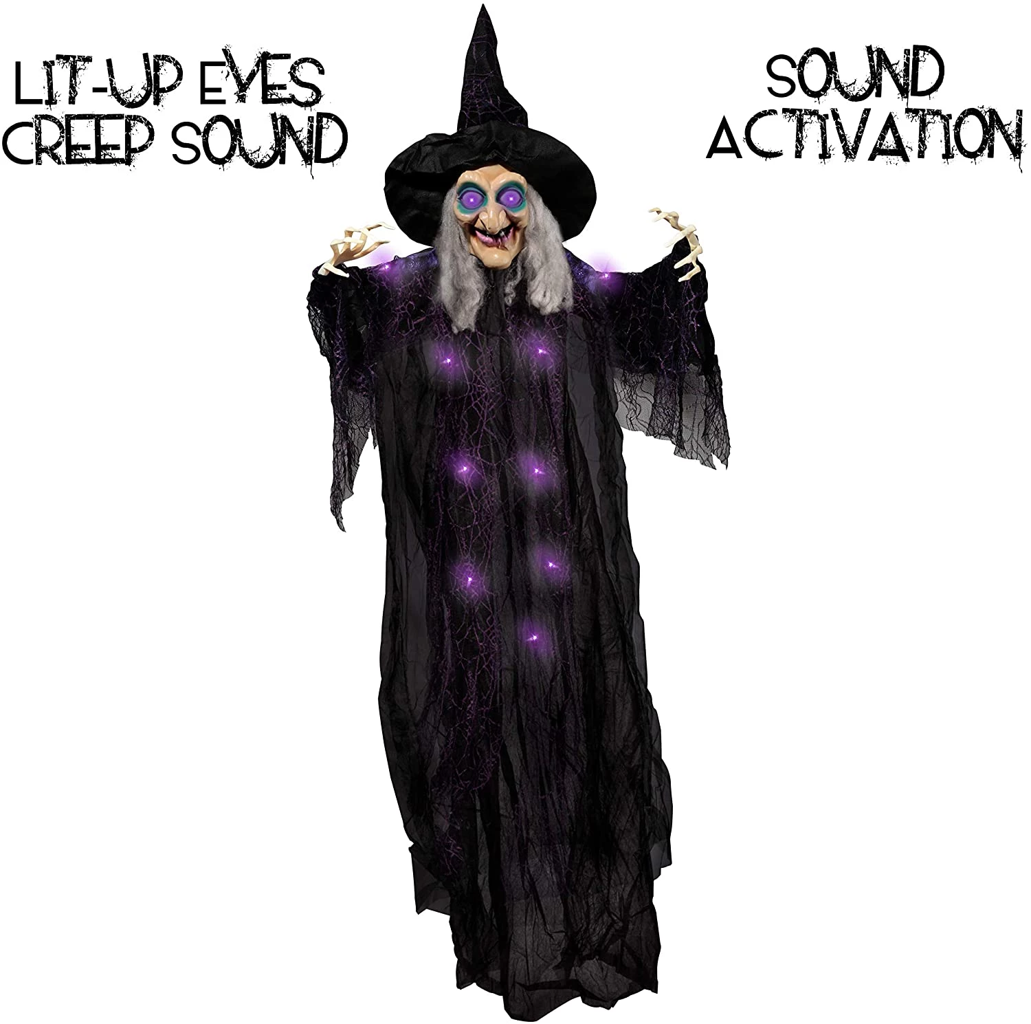 • This 72” large light-up talking witch makes it easy to be noticed, provides this real scary feeling at outdoor lawn and many other horrific theme parties