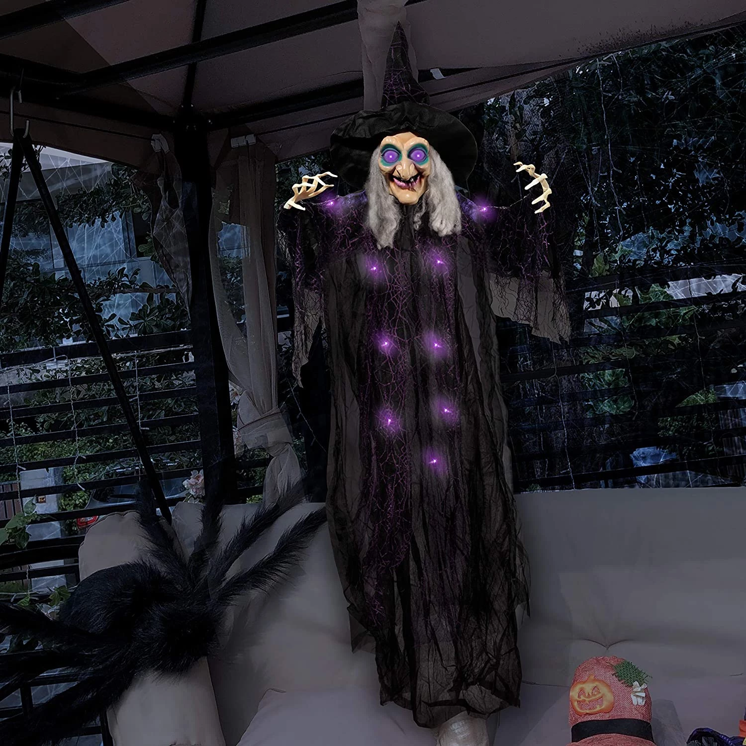 • This Halloween Hanging Witch Decoration has a sound activation function, which creates a creepy and scary atmosphere for any Halloween events, spooky entertainment, haunted houses party, and other themes occasions