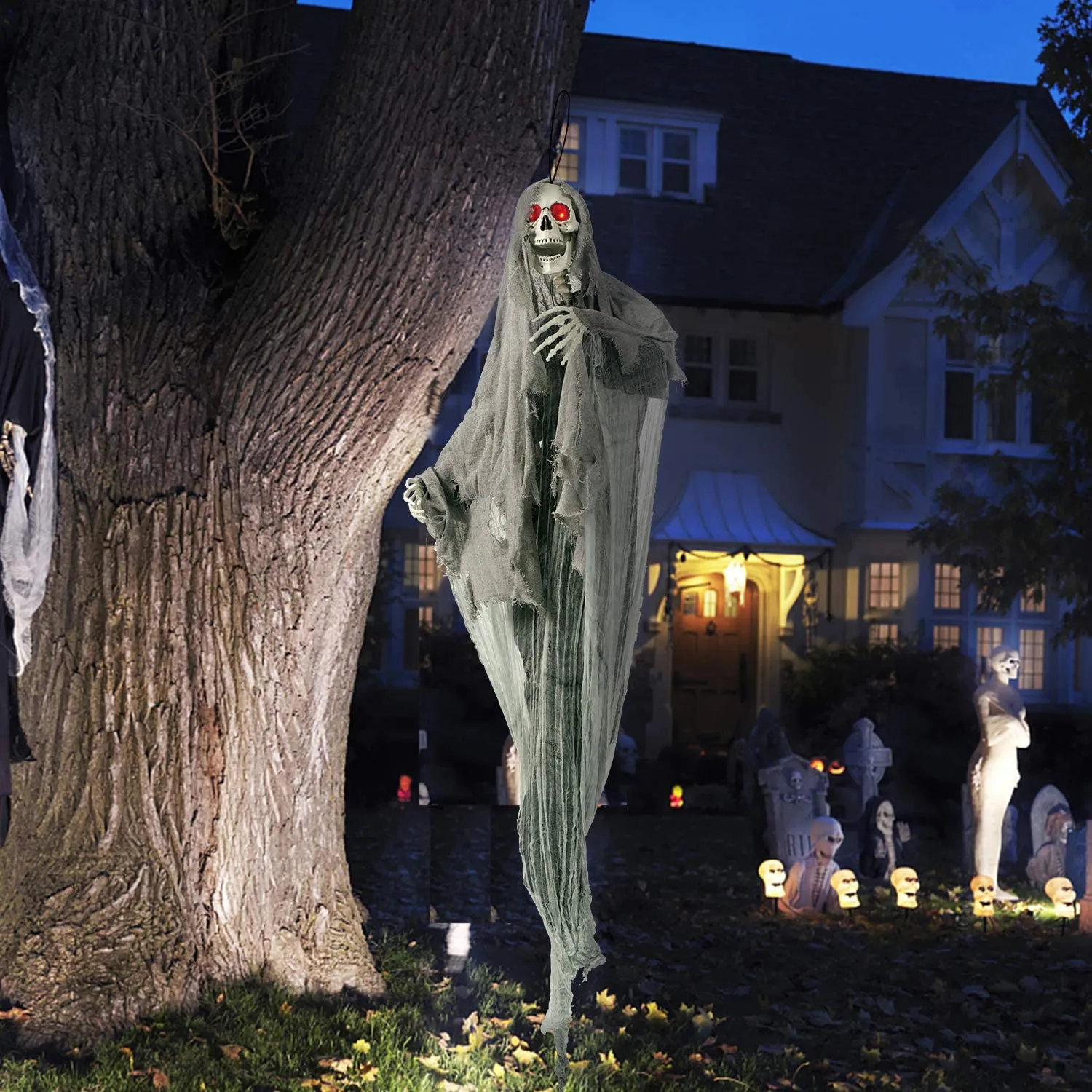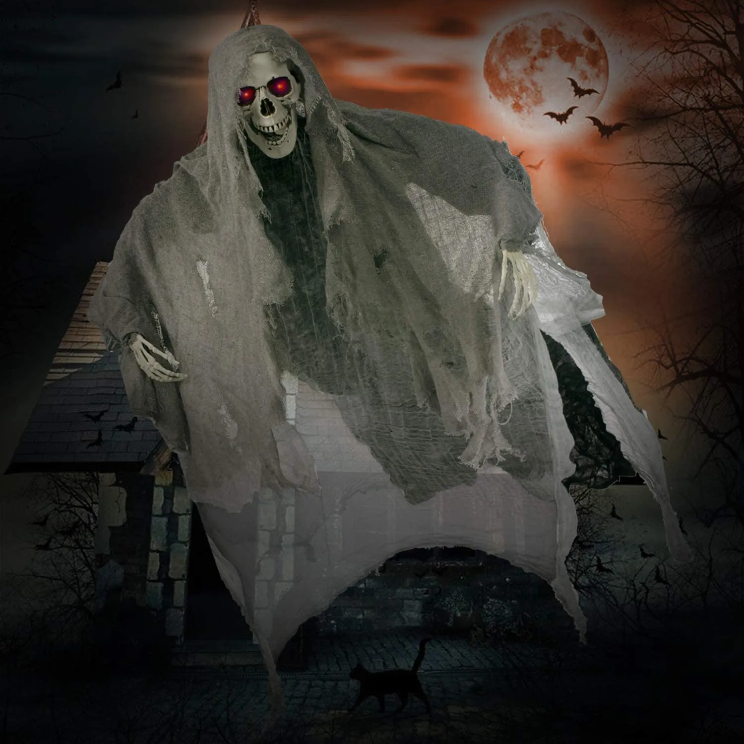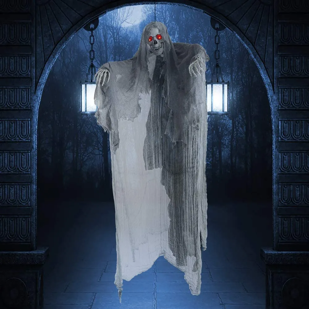 • Halloween Grim Reaper Decorations come with Creepy Scream and Lighted LED Eyes