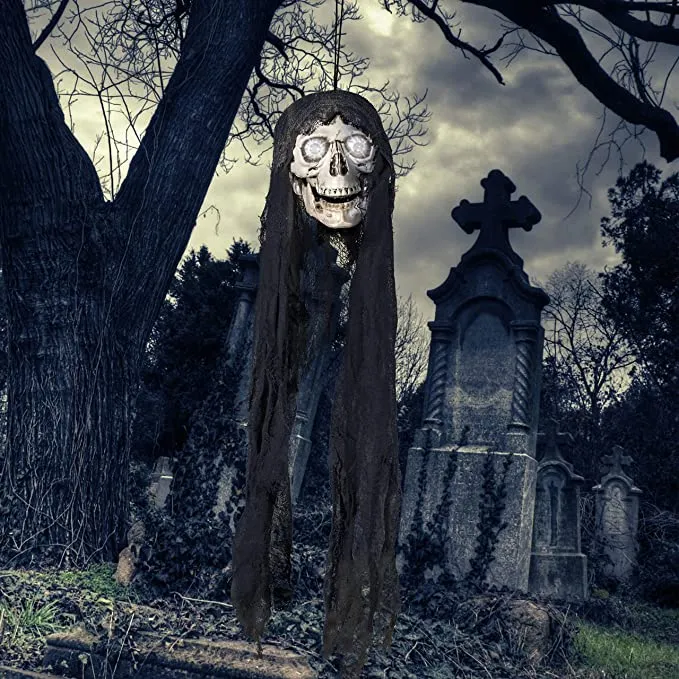 - This 31″ large light up talking skull make it easy to be noticed, provide this real scary feeling at outdoor lawn and many other horrific theme parties