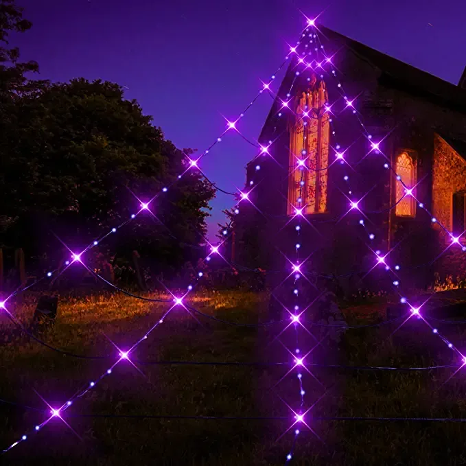 - SAFE AND DURABLE. Our Halloween lighted spider web with UL certified adapter for safety and durability. Energy-saving LEDs are used in our lit spider web, which consume less energy and will stay cool, safe to touch even after long hours of work.