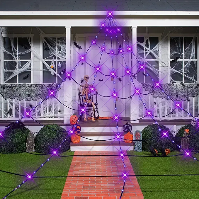 - PERFECT HALLOWEEN DECOR. Spider webs are one of the easiest ways to add Halloween spookiness to your house or party. Our giant spider web unique sight would definitely attract and spook your neighbors and friends at Halloween! Make your house the focal point of the Halloween street and get the attention of children, adults, and Trick-or-Treaters with this halloween outdoor web.