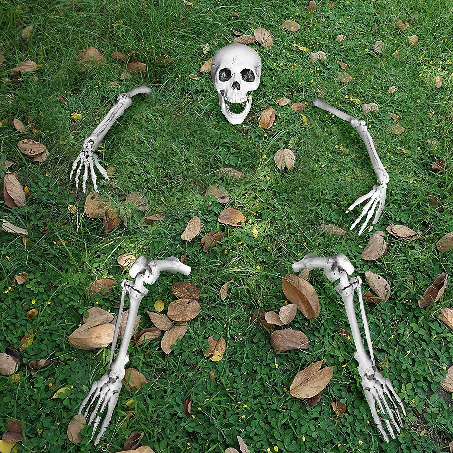 • Halloween Groundbreaker Skeleton includes 1 Skull & 2 Skeleton Arms & 2 Skeleton Legs & 5 Plastic Stakes