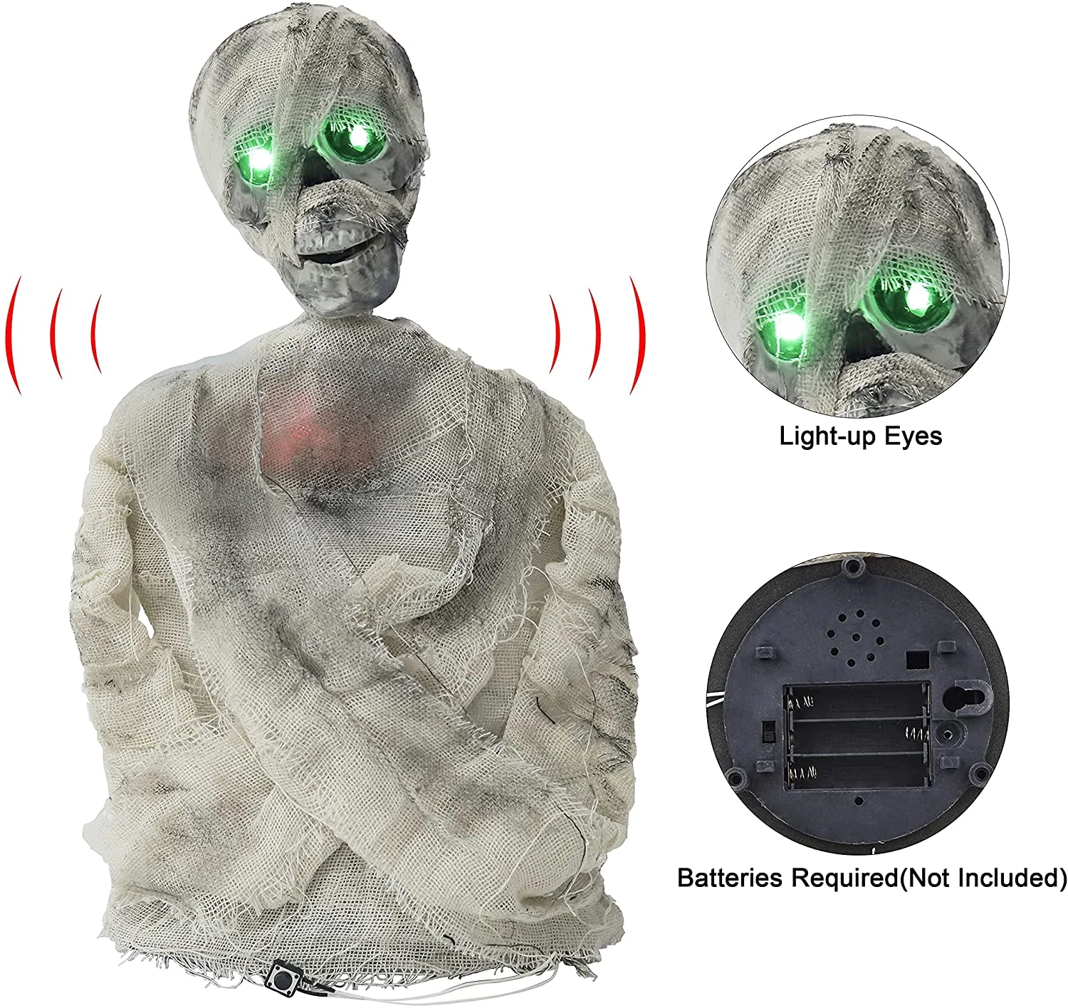 - Our tabletop skull decor includes a 14.5″ mummy table centerpiece decoration with function.