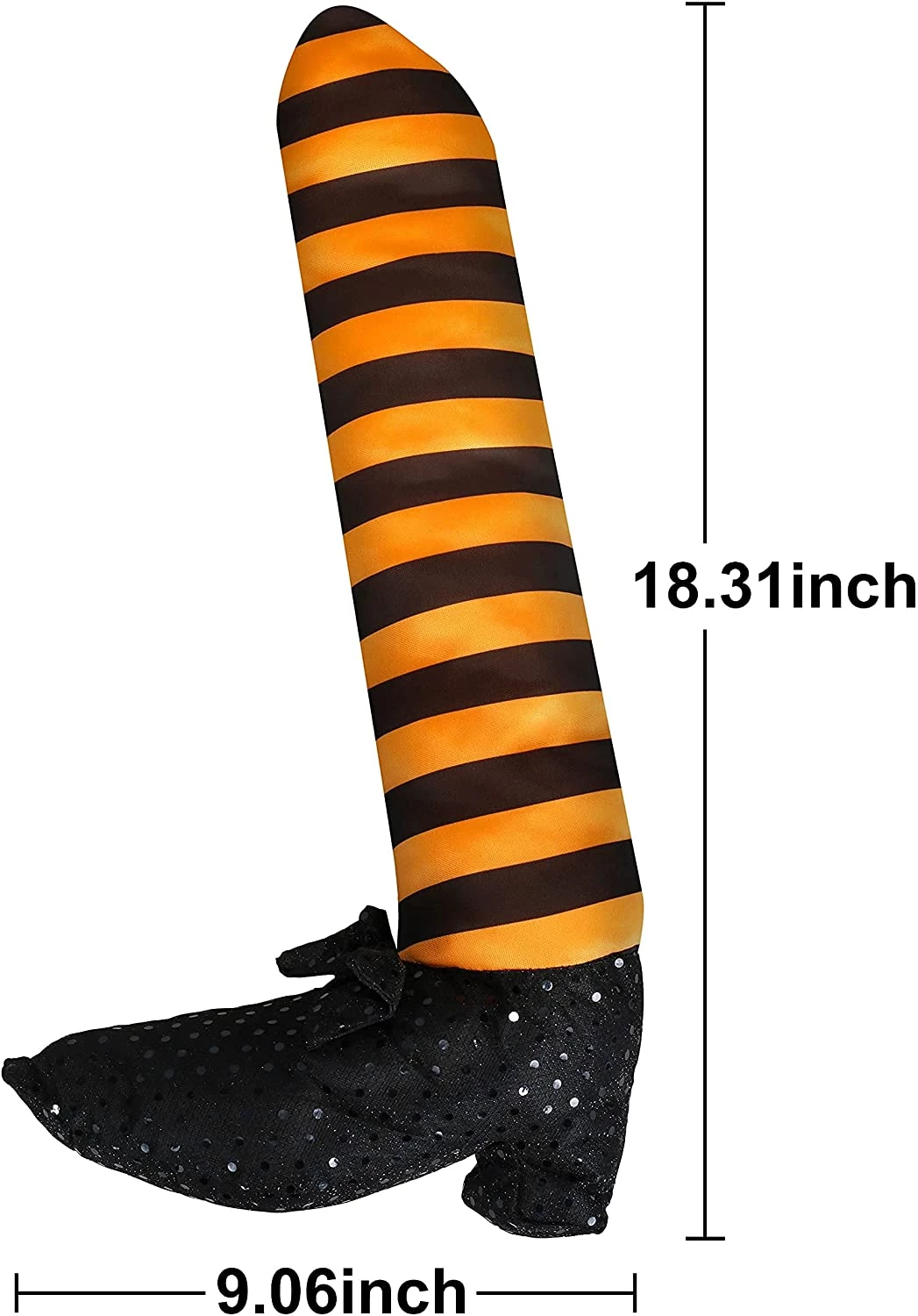 - Our Halloween decoration includes a pair of witch legs in 19.5x 9inch. Get your friends and family into the Halloween spirit with adorable home accents like these whimsical legs.